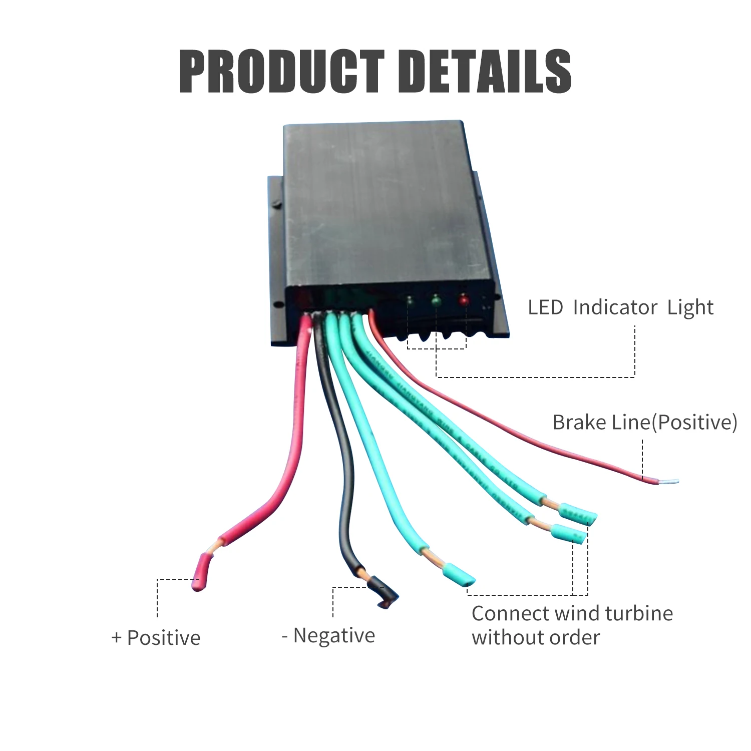Контроллер может управлять ветровой турбиной автоматически заряжать батарею. Автоматический тормоз и ручной тормоз дополняют друг друга, чтобы удовлетворить различные потребности клиентов. Если аккумулятор переворачивается из-за неправильной работы, вам не нужно будет заменять предохранитель, положительная и отрицательная полярность повторного подключения правильно делает всю систему работать более надежно.