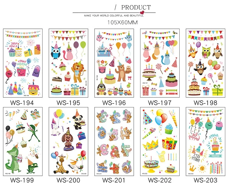 Размеры: 6x10,5 см за штуку Руководство пользователя: 1. Вырежьте татуировку на выбор и удалите прозрачный лист. 2. Нанесите татуировку на кожу. 3. Намочите татуировку губкой. 4. Через 20-30 секунд Аккуратно удалите подложку. 5. Позвольте татуировке высохнуть. Для удаления: 1. Татуировка мазком с натиранием алкоголя или детского масла. 2. Подождите 10 секунд. 3. Затем аккуратно и повторно протирайте спиртом или маслом ребенка, пока не переместите. Предупреждение: 1. Прекратите использование при возникновении раздражения. 2. Не кладите его прямо на глаза. 3. Не для детей до 3 лет.