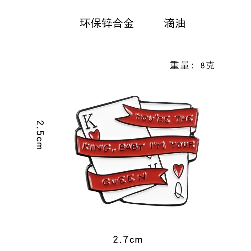 Игральные карты эмаль булавки Пользовательские Значки королева и король Броши Булавки сладкий дискурс значки нагрудные знаки ювелирные изделия подарки для влюбленных Минимальный заказ: 1 шт. Размер: как показано на картинке