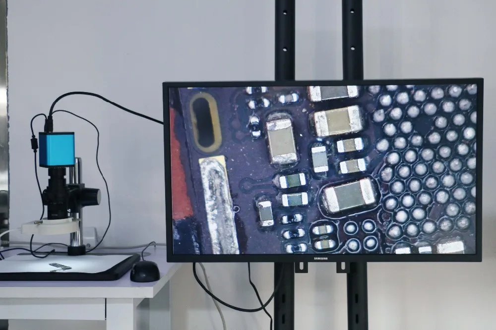 Feature: 1080P FULL HD 60FPS high speed camera UI design menu, easy to control by mouse Autofocus, when observation Objects of different heights(MAX 10CM), you do not need adjust the lens's Working distance When you adjust the lens's Magnification, you do not need adjust the lens's Working distance When you adjust the lens's Working distance(MAX 10CM), you do not need adjust the lens's Magnification, The camera can Autofocus Specification: Sensor: SONY sensor Image Sensor : Colour CMOS Pixel size : 1/2.8〞 Menu : Fully digital UI design Method of Operation : Mouse Lens interface : C/CS-type Power DC : DC5V Output method : HDMI White Balance : Auto / Manual / One-push control Exposure : Auto / Manual Display Frame rate : 1080P@60fps Scanning method : Line by line scanning Shutter Speed : 1/50s(1/60s)~1/10000s Operating Temperature : 0℃~50℃ Magnification / Zoom : Support Saving function : Support U disk(optional) 1.Before connecting power supply, please connect mouse to the camera. 2.Under AF mode, the program will automatically adjust the focus to provide a clear image; Switching to "Click F" mode, it will lock the focus after the system performed autofocus on the required image; Even if the image is blurry, with focus being locked, it will not trigger autofocus again; When "MF" (Manual Focus) is set, the MF can be adjusted . 3.If autofocus cannot operate under special circumstances (e.g. Smooth reflect surface). Move the focus frame to objects with details, change to "Click F" mode to perform one-off auto focus operation, or switch to "MF" mode for manual focus operation. 4.it needs to wait for a period of time When "Save Image" is selected, icons appear in the center of the screen and are automatically saved to U disk in jpg format. 5.When pressing "Video" button to start recording, •Rec will appear at the lower right hand corner of the camera screen. By pressing "Video" button again, video recording will be stopped and automatically saved to TF card with H.264 format 6.When saving the image / video, the folder and files will be named according to date and time respectively. 7.When you need to correct the rear focus of the lens, select the "motor in the middle" and then adjust the mechanical rear focus to make the image clear.