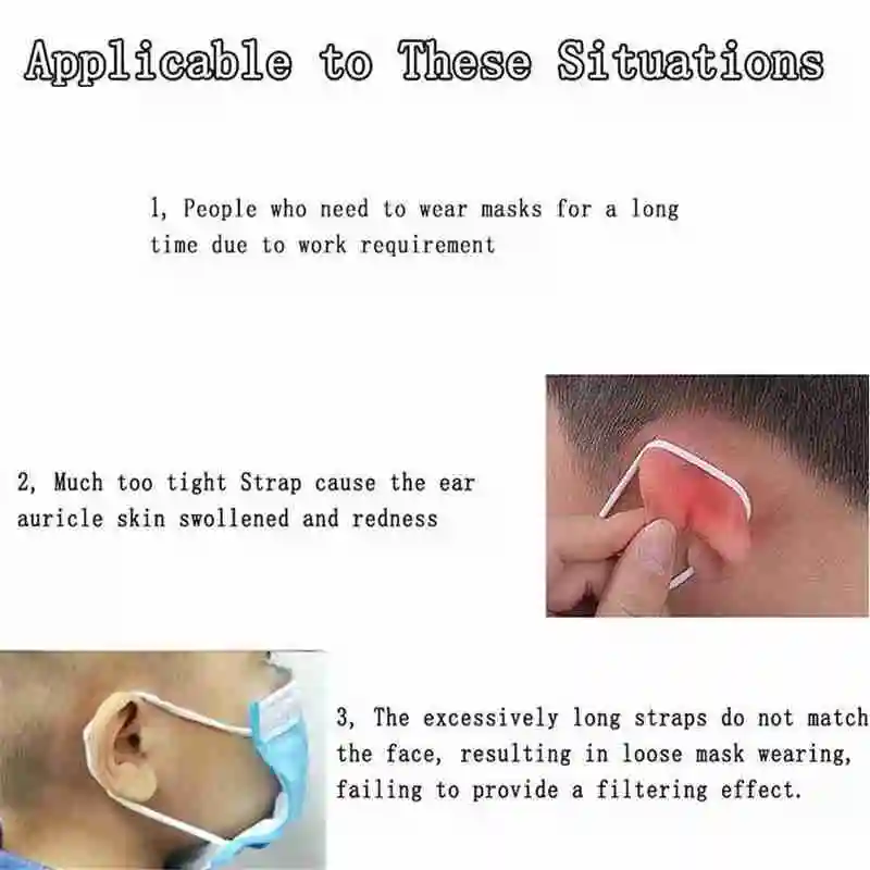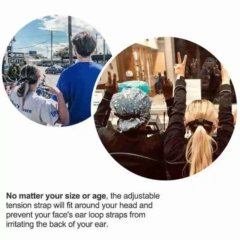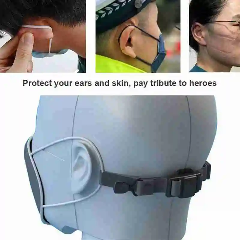 Ремешок работает при соединении с серьгами на лице, и его можно зафиксировать на месте вокруг головы владельца. Это уменьшит дискомфорт, который может возникнуть вокруг ушей, и равномерно распределит давление, генерируемое лицевым покрытием.