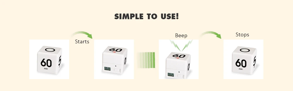 Подробная информация о продуктеТипЧасы-БудильникБатарея информацияРазмер и ВесВес продукта0,0554 кгПосылка весом0,0879 кгРазмер продукта (Д x Ш x В)6,00x6,00x6,00 см/2,36x2,36x2,36 дюйм (ов)Размер посылка (Д x Ш x В)7,00x7,00x7,50 см/2,76x2,76x2,95 дюйм (ов)Посылка содержаниеПосылка содержание1 x Cube таймер