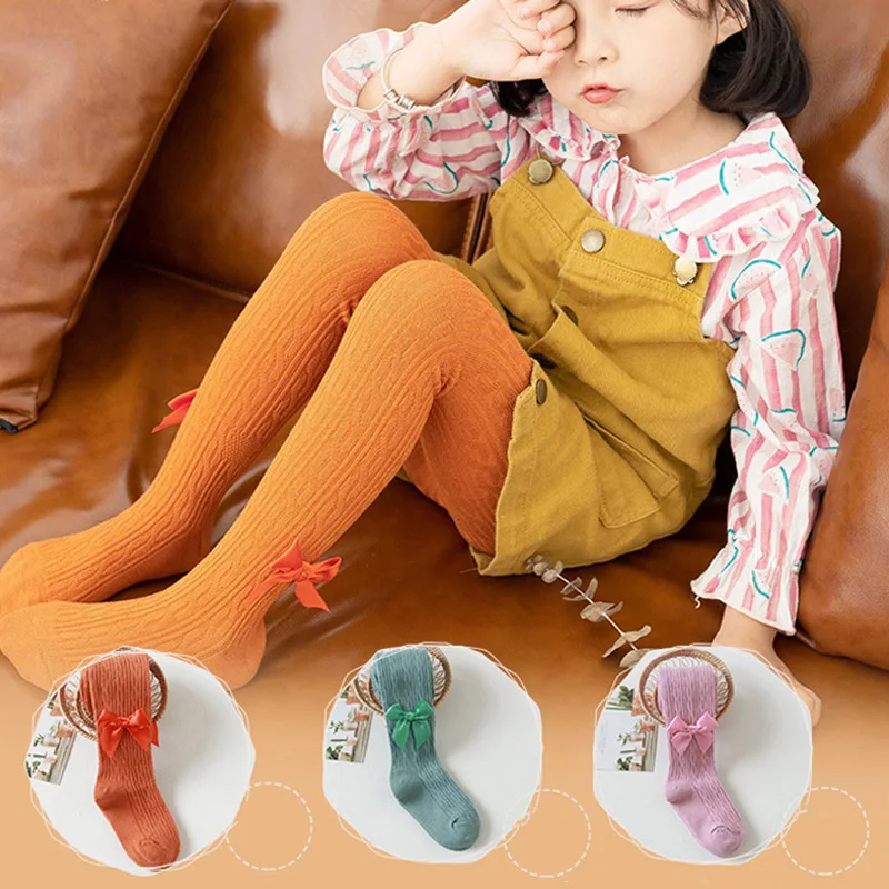 4. Трикотажные колготки для девочек с милым бантом; Дышащие и теплые