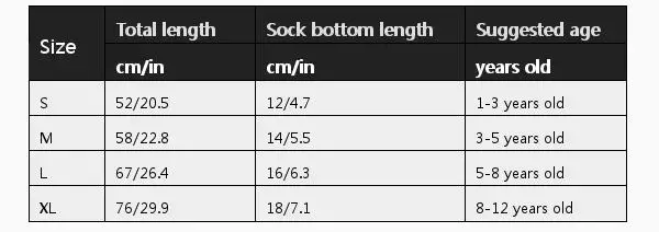 Размер: Общая длина носка; Длина подошвы; Рекомендуемый возраст
