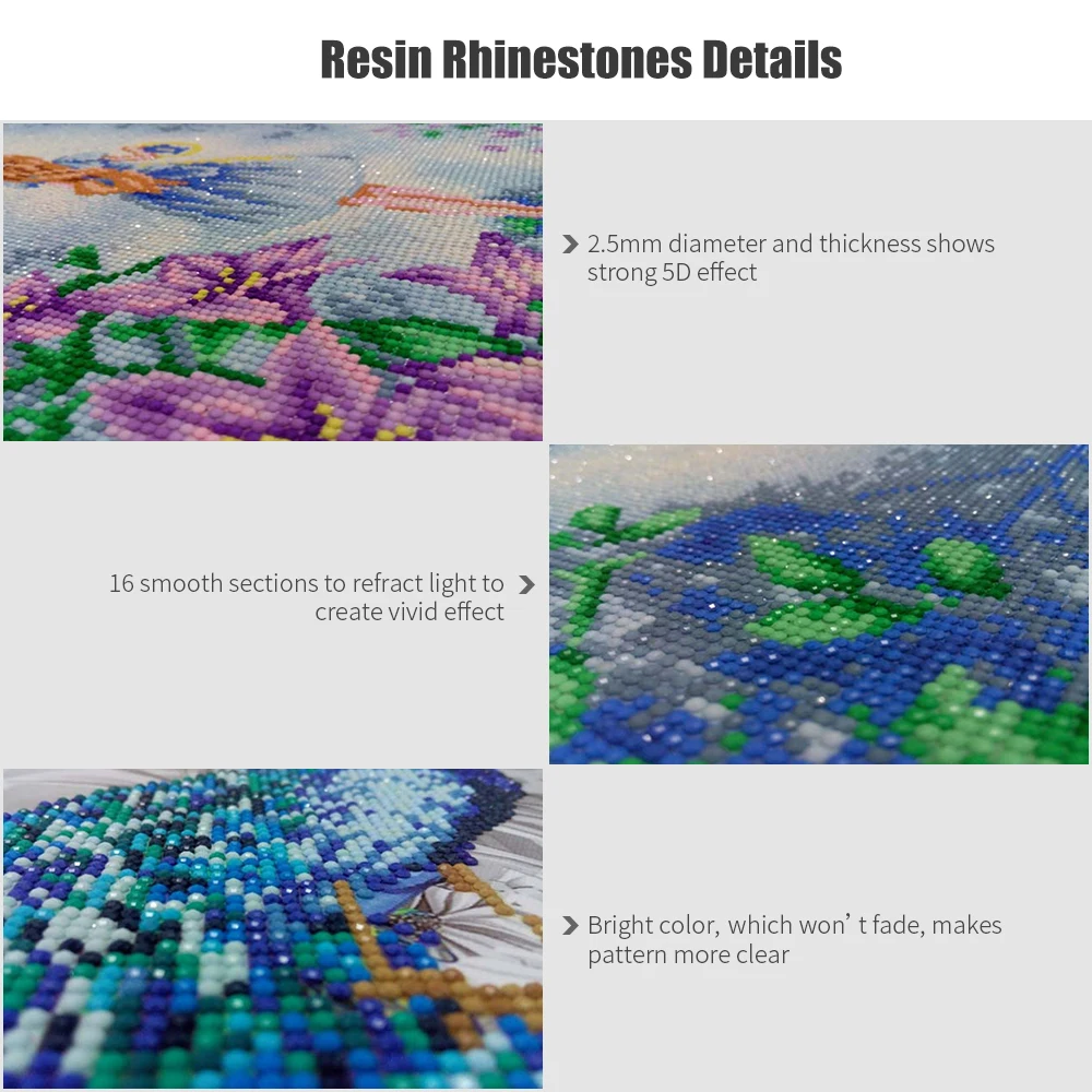 Точный рисунок и стразы из смолы демонстрируют сильный эффект 5D.