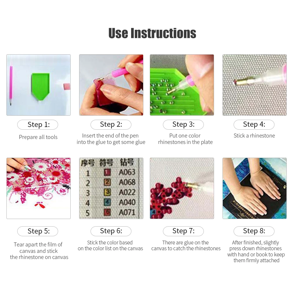 Стразы упакованы в индивидуальные сумки, а цветная Таблица напечатана на холсте, легко определить.