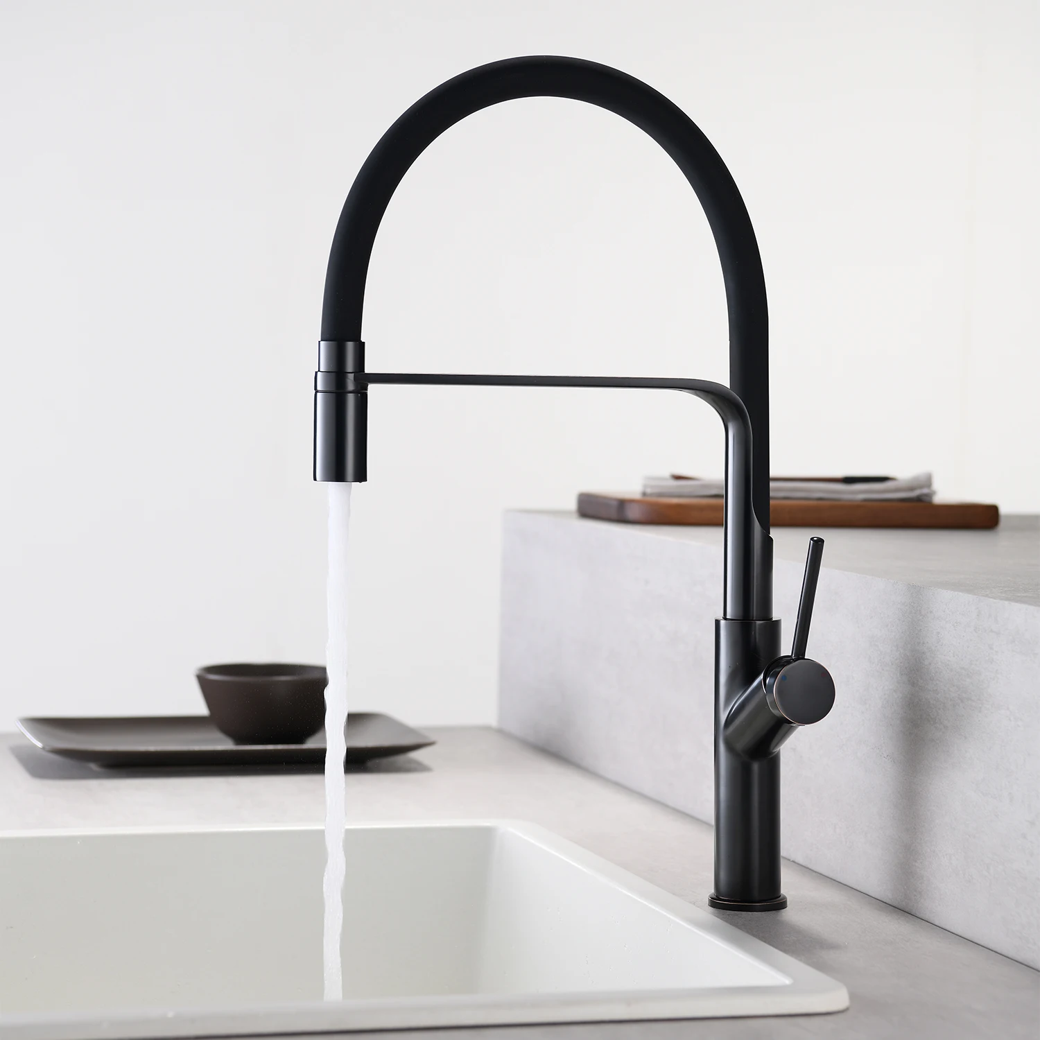 Кухонный кран с высококачественным силиконовым шлангом более прочный и мягкий, не трескаясь. Высококачественный керамический картридж может уменьшить количество протечек, обеспечивая надежное бескапельное использование и первоклассную производительность для повседневной жизни. Удобная конструкция с одной ручкой для легкого управления потоком воды, удобная для приготовления пищи и очистки.