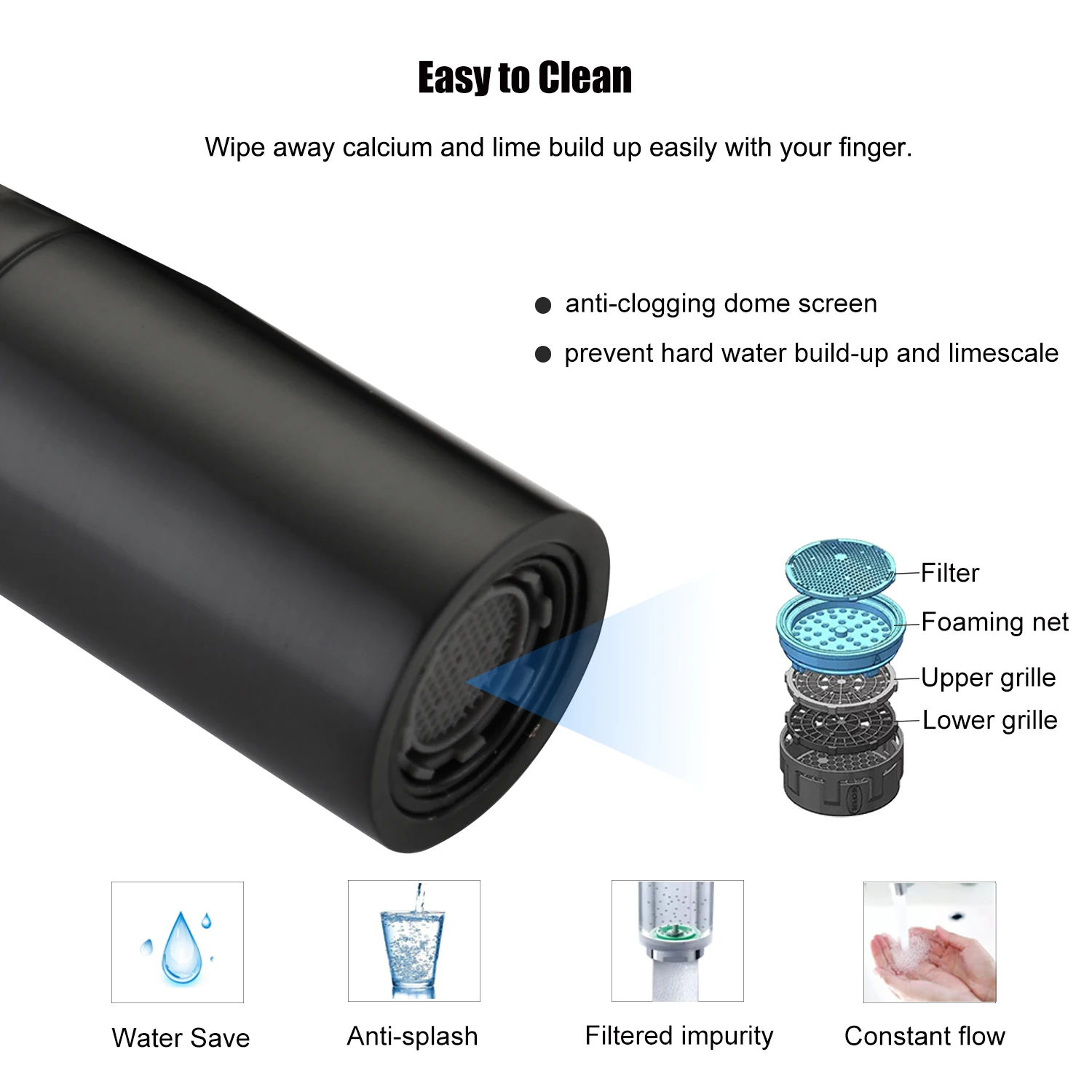 [Поворот на 360 °]Поворотный кран с регулируемым силиконовым шлангом обеспечивает полную гибкость и маневренность для всех ваших потребностей в приготовлении пищи и очистке.
