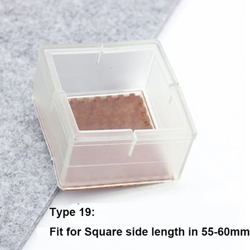 2. Пожалуйста, выберите правильный размер для ваших ножек мебели (20 стилей на ваш выбор);2. Защита для ног стула Цвет: прозрачный; Форма протектора для ног стола: круглая или квадратная;