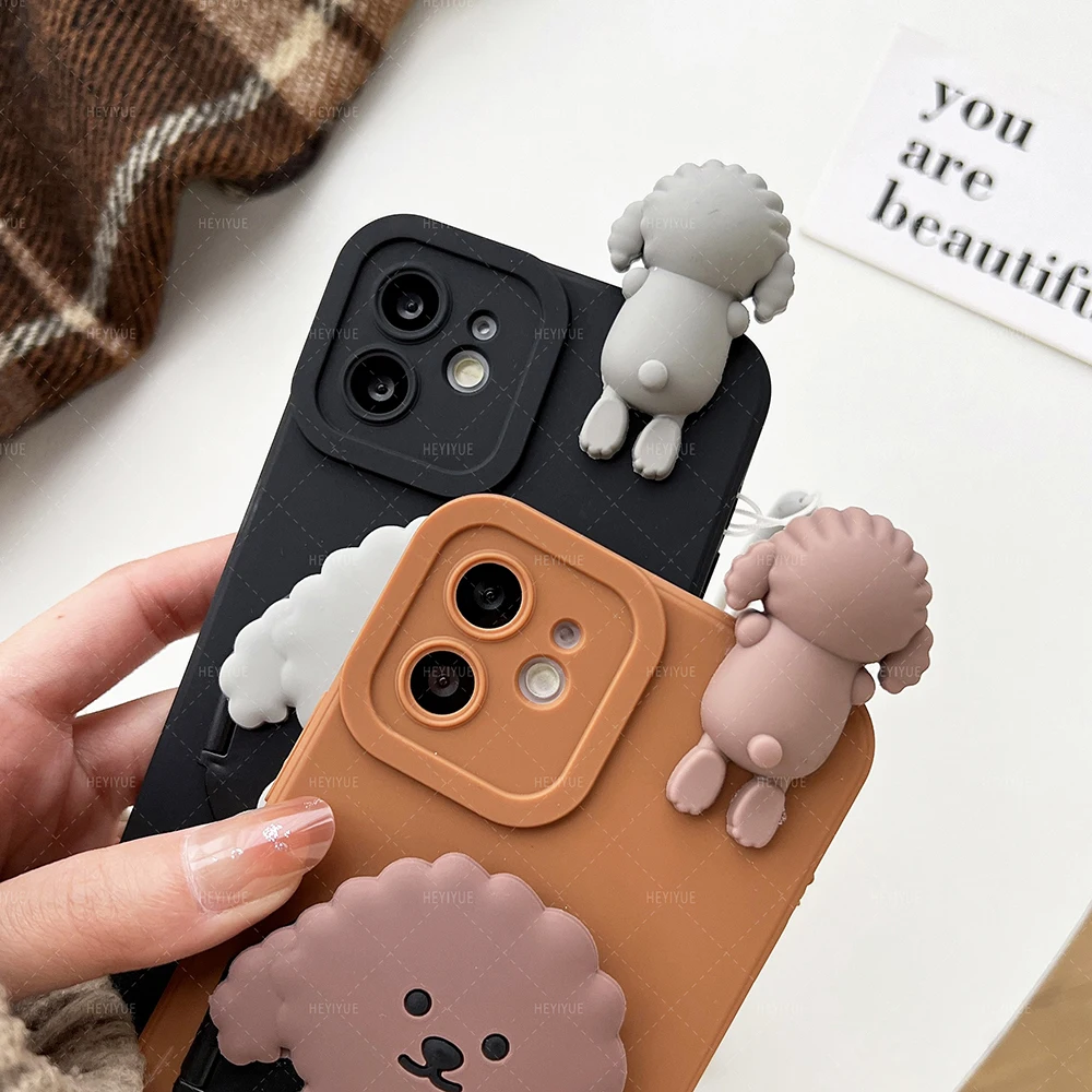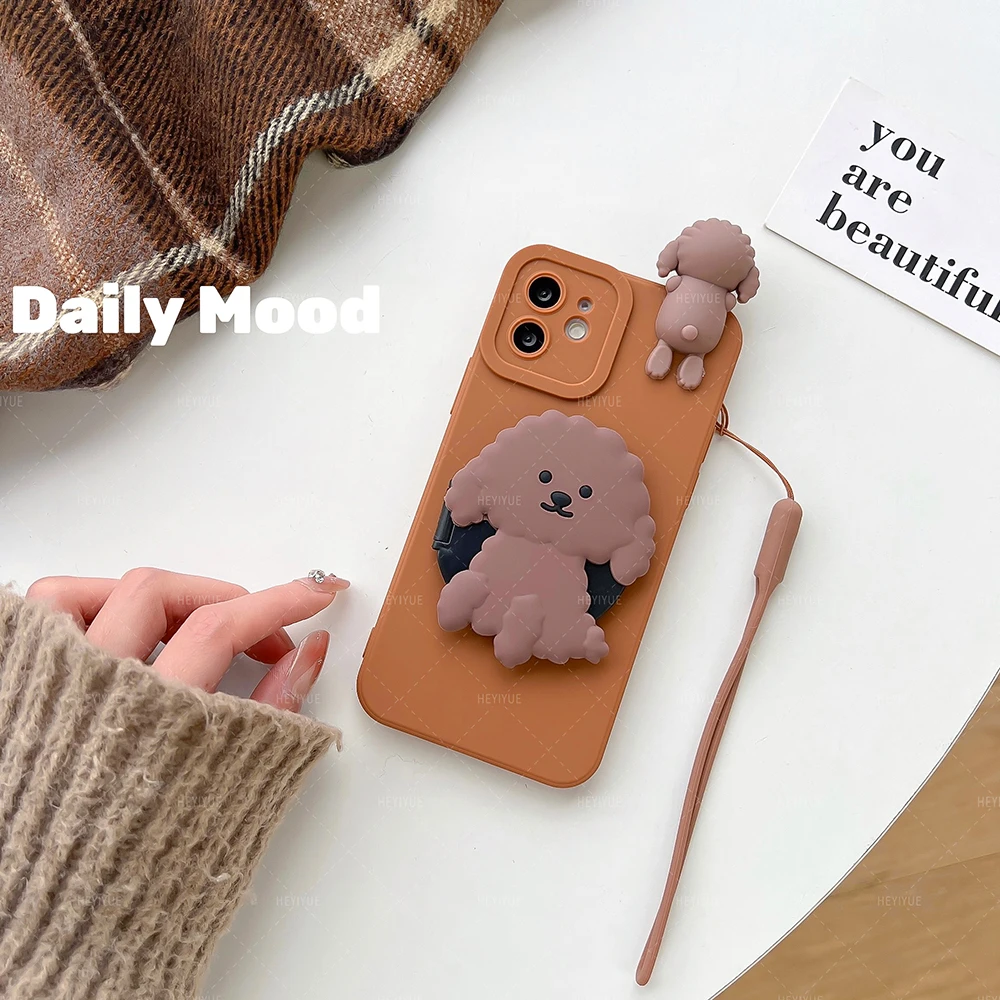 Cute Dog Makeup Mirror Holder Case for Samsung Galaxy S23 Plus S22 S21 FE S20 Ultra M53 M23 M33 M13 M52 12 J6 J4 Plus J730 Cover