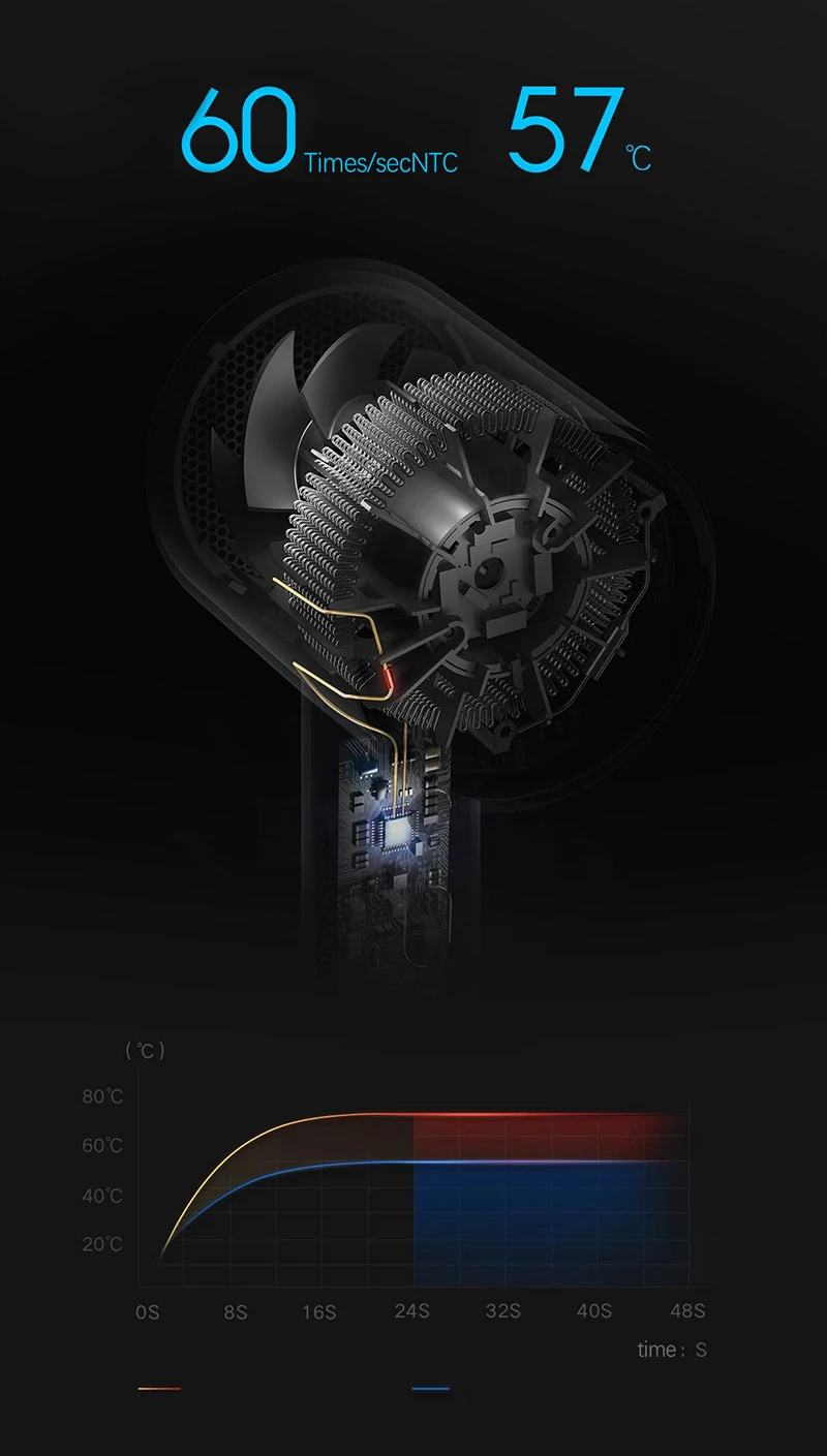 Многократная защита от перегрева, безопаснее.NTC контролирует температуру ветра в режиме реального времени. При перегреве температура автоматически остановится.
