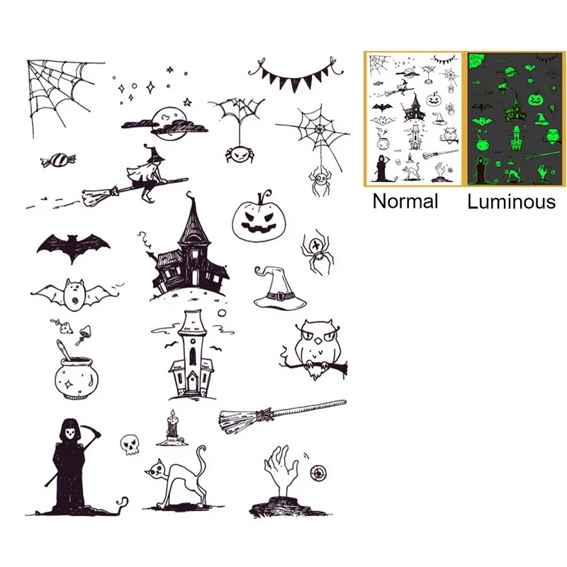 -Эта светящаяся наклейка показывает эффект цветной печати в течение дня, а некоторые части светится в темноте.