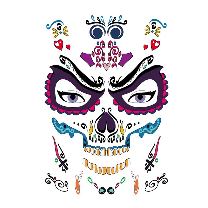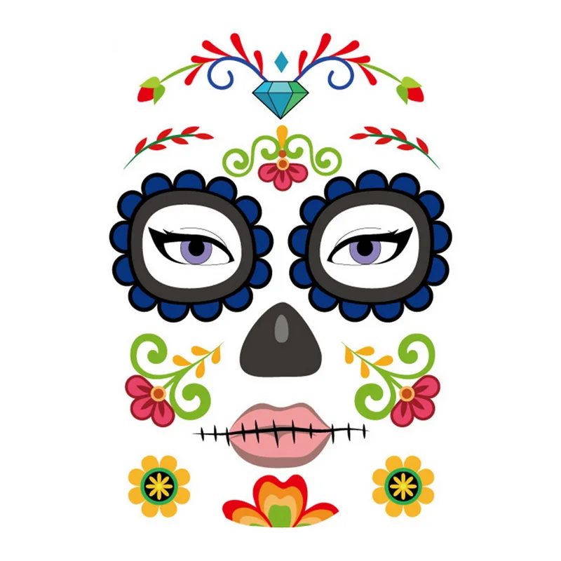 Наклейка на лицо на Хэллоуин, временная татуировка, боди-арт, водонепроницаемый маскарад, Забавный макияж, фестиваль немертвых, поддельные татуировки, украшение для лица