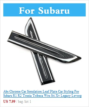 Abs Хромированная Автомобильная имитация листовая пластина для автомобиля Стайлинг для Subaru R1 R2 Trezia Tribeca Wrx Sti Xv Legacy Levorg Lucra Outback Pleo 100% новый и высокое качествоМатериал: АБС-пластикЦвет: как на картинкеКоличество: 2 x/один комплектСтрогий заводской контроль качества, высокое качество гарантировано. Подходит как оригинальные детали.Простая установка, очистите пыль, масло и т. д. с очисткой с внутриканальными наушниками, 3 м лента на спине.Профессиональная установка восстановлена.