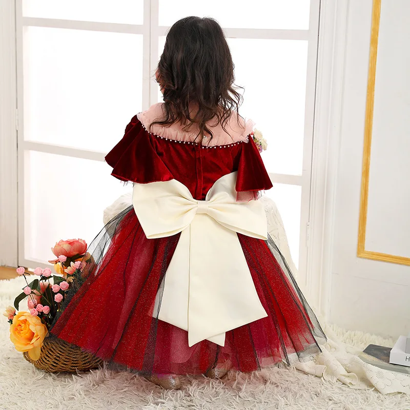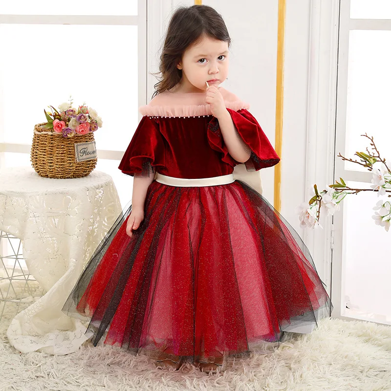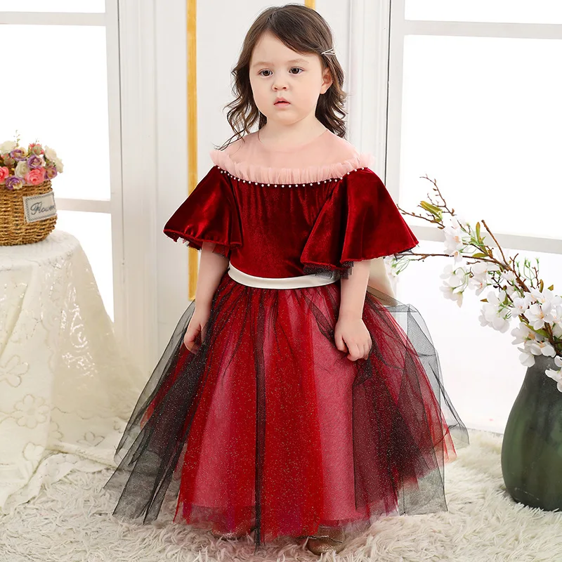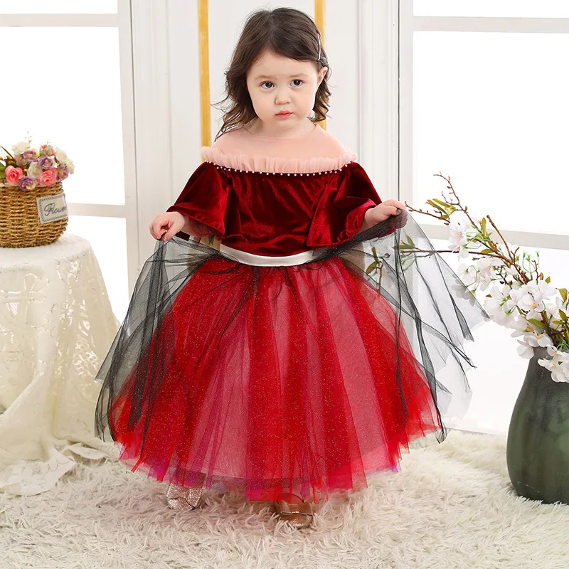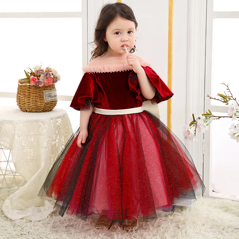 Осенне-зимнее детское бархатное платье принцессы для маленьких девочек; Детские вечерние платья; Красное рождественское платье на день рождения; Элегантное платье для девочек