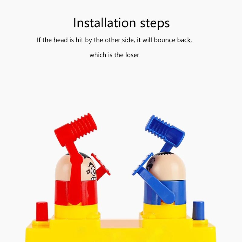 Легко и интересно играть, вам просто нужно научить нажимать кнопку и использовать молоток, чтобы сбить головы роботов-противников, противник блокирует щит, пока один из роботов не ударит по голове, голова отскакивает, а другая сторона не выиграет.