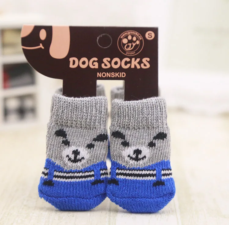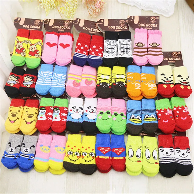 Рождественские вязаные носки для милых щенков и собак, 4 шт./компл., эластичные Нескользящие теплые носки с когтями и лапами для домашних животных на осень и зиму