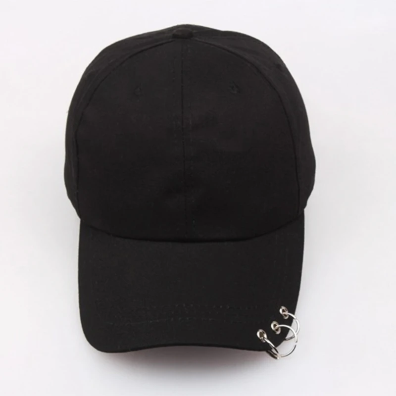 Stylish hip hop style, solid color, 3 metal rings decorated, pre-curved visor, round with top button, 6 embroidered breathable eyelets.