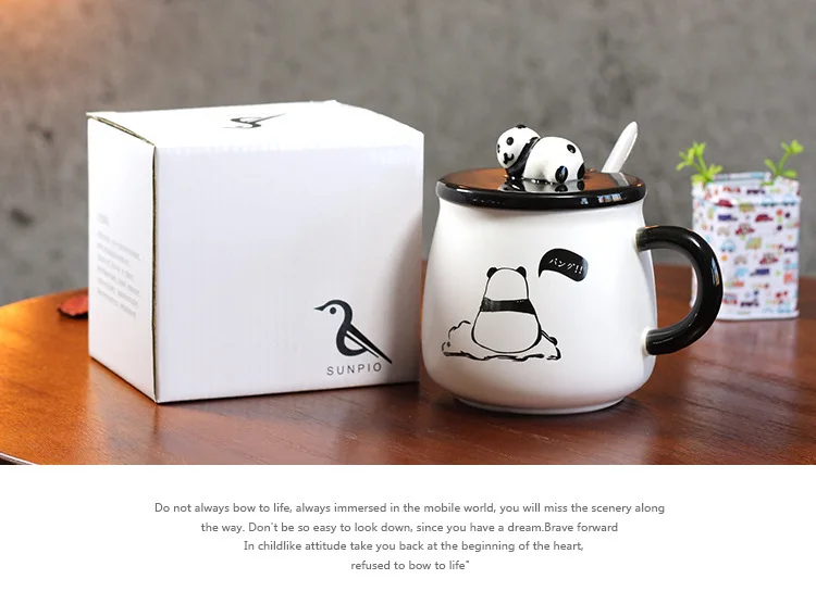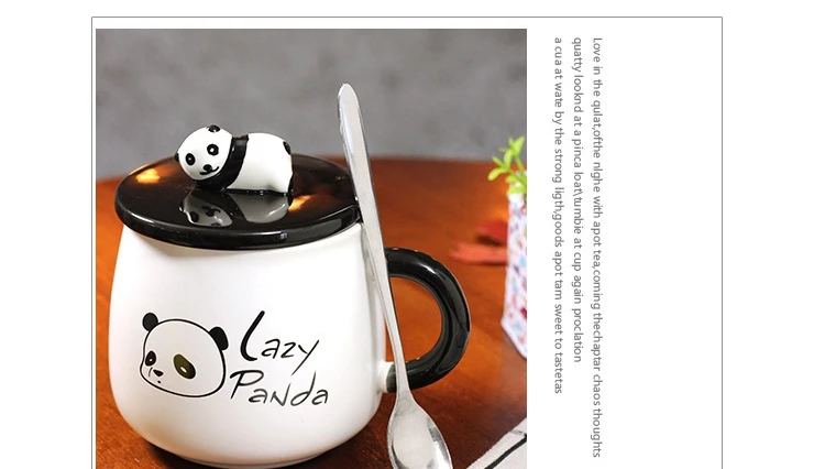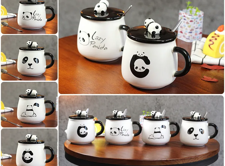 Креативная керамическая кружка с рисунком панды с крышкой и ложкой, милая кружка с воюющим горшком, молочная кофейная чашка
