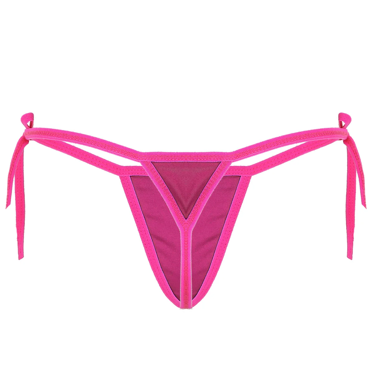 Низкая посадка, открытая спереди или мини-покрытие, уникальные ремешки с завязками на боку, можно регулировать по размеру.