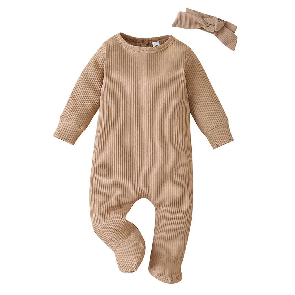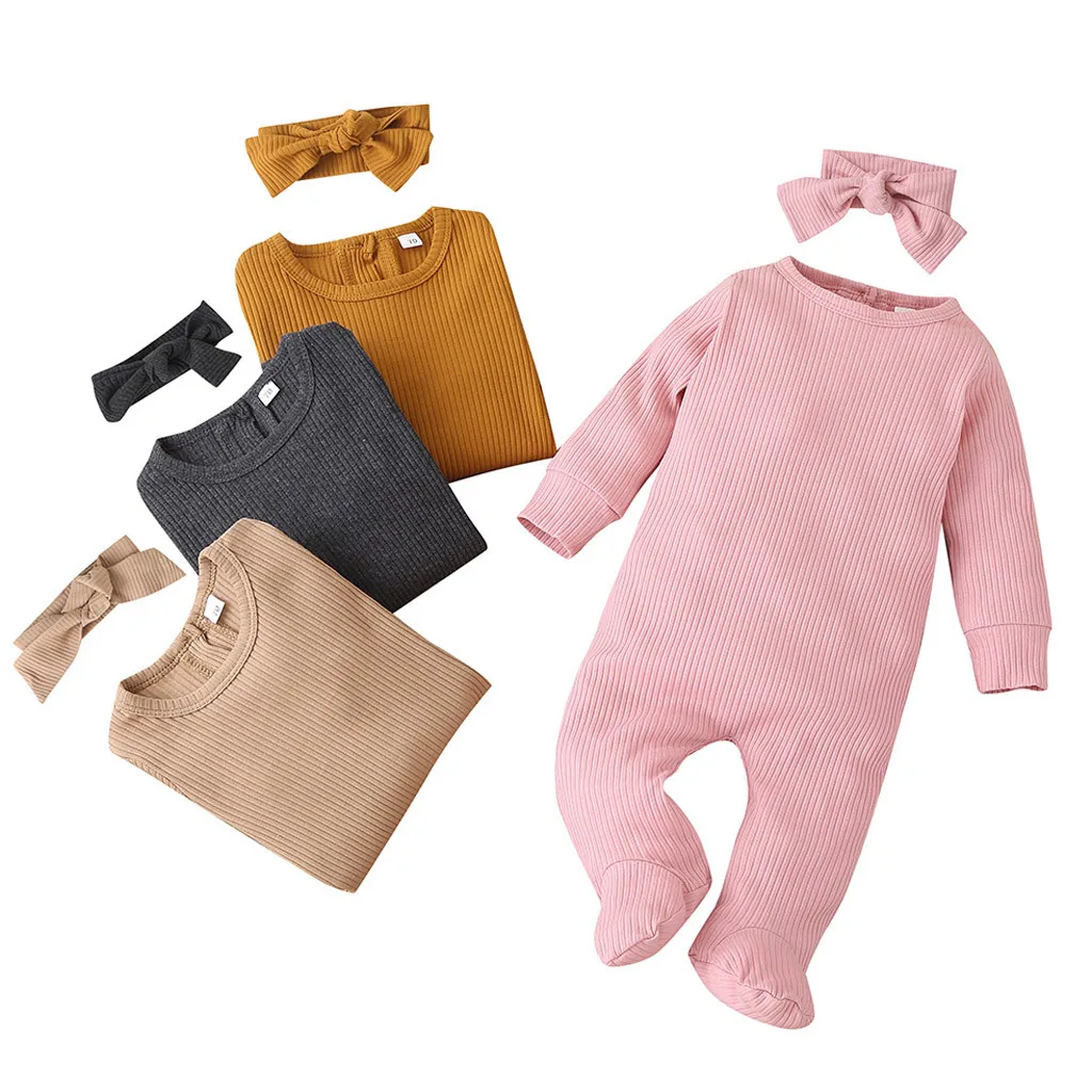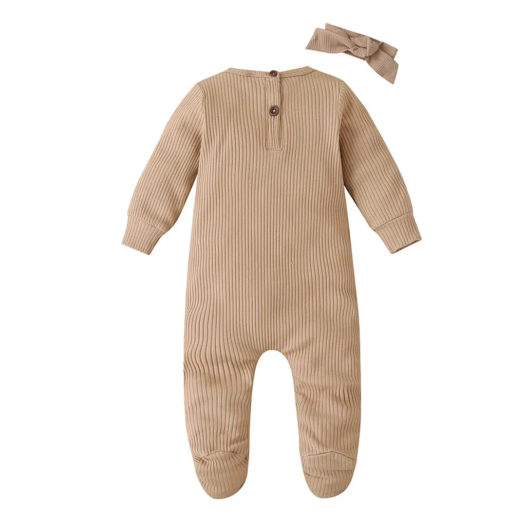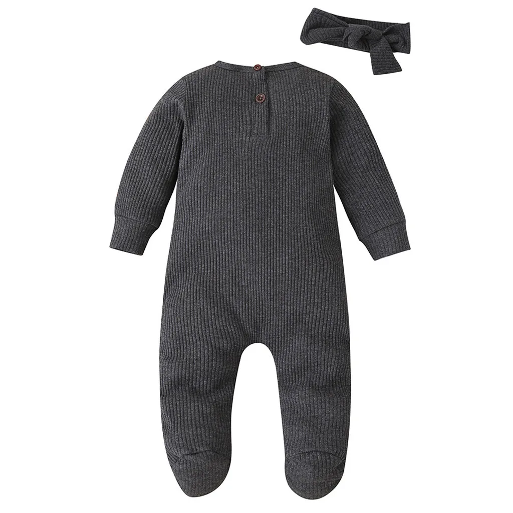 Одежда для новорожденных; Боди для малышей; Одежда для маленьких мальчиков; Однотонный комбинезон с длинными рукавами для новорожденных мальчиков и девочек; Комбинезон + повязка на голову