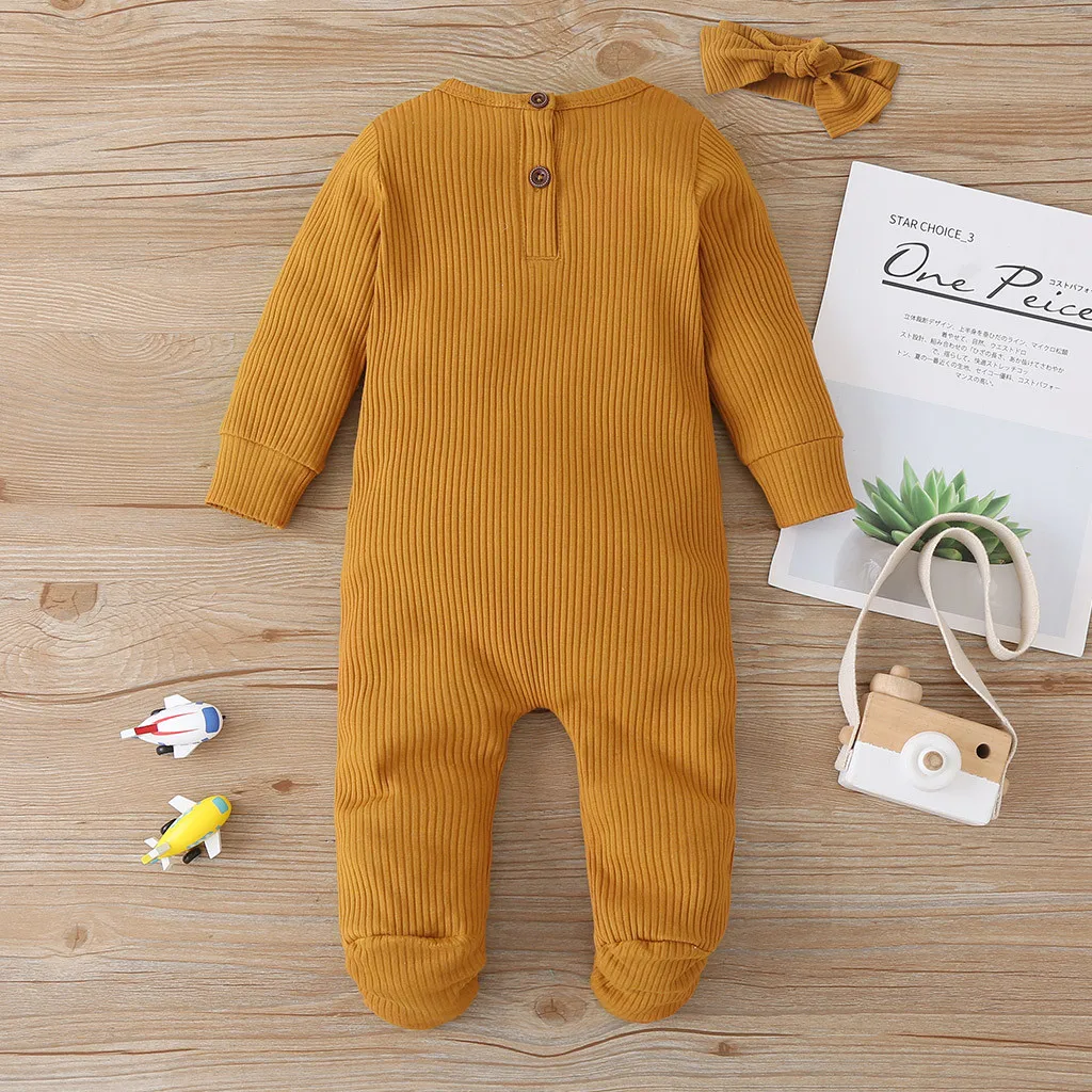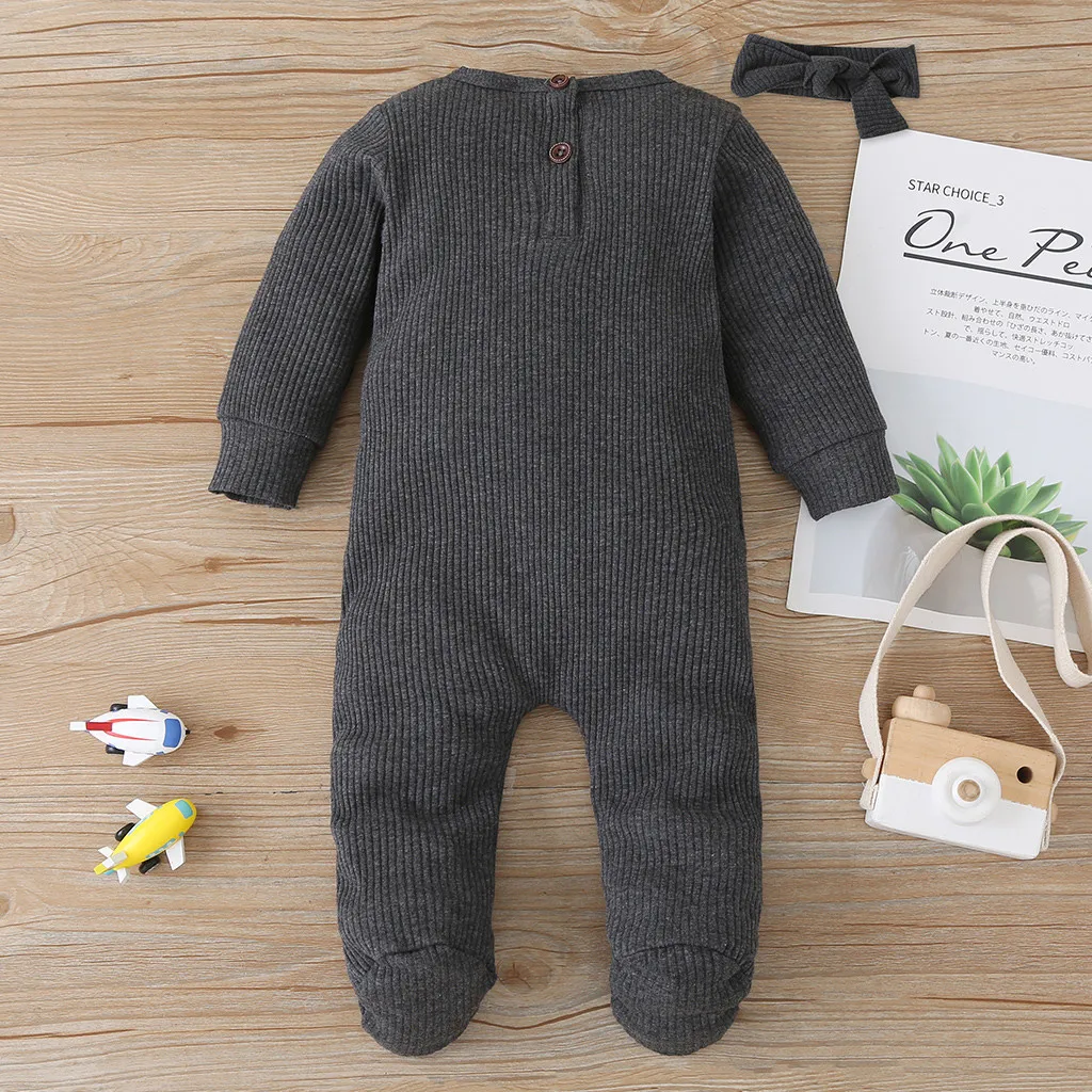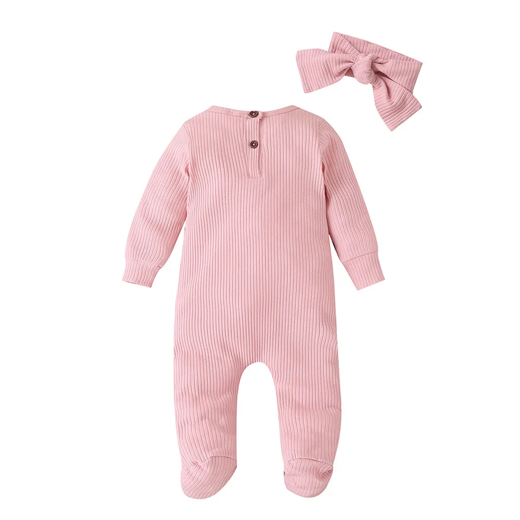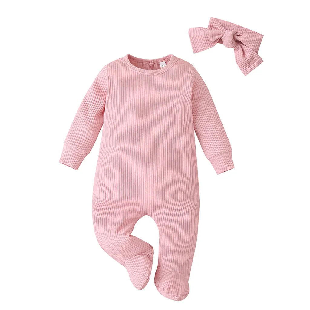 Одежда для новорожденных; Боди для малышей; Одежда для маленьких мальчиков; Однотонный комбинезон с длинными рукавами для новорожденных мальчиков и девочек; Комбинезон + повязка на голову