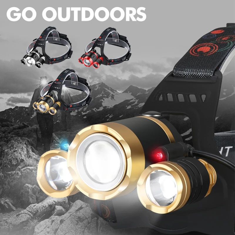 Тип: налобный фонарь, лампаТип лампы: 1 * XM-L T6 + 2 * XPEКоличество светодиодов: 3Выход яркий может достигать макс. 15000 люменов [лм] • Цвет СВЕТОДИОДА: БелыйВодонепроницаемость: Да, но нельзя положить в воду, это не для дайвинга.Тип переключателя: кнопка (включение, выключение и выбор режима)Материал: алюминийЦвет: серебристый/золотой/красныйИсточник питания: 2x18650 литий-ионная 3,7 V Батарея
