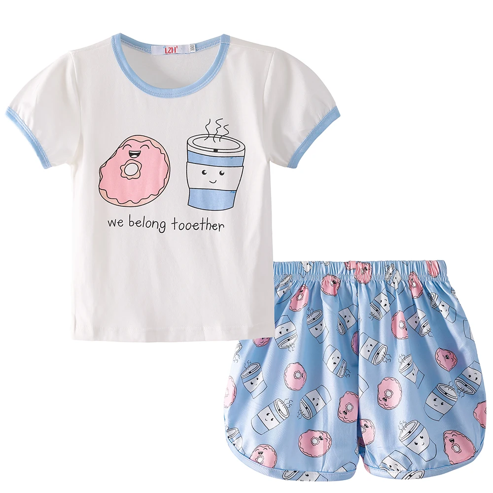 Пижамы с мультяшным принтом для девочек, хлопковые пижамы, Детская одежда для сна, Детская Повседневная Домашняя одежда, костюм, 2021 летняя пижама для девочек