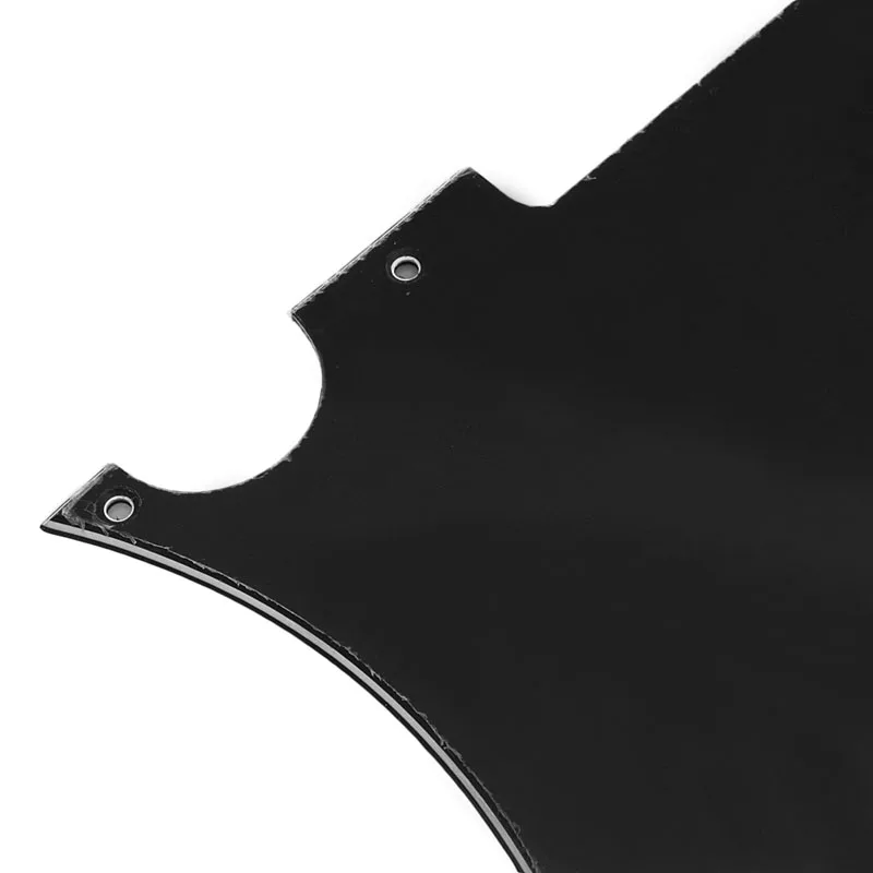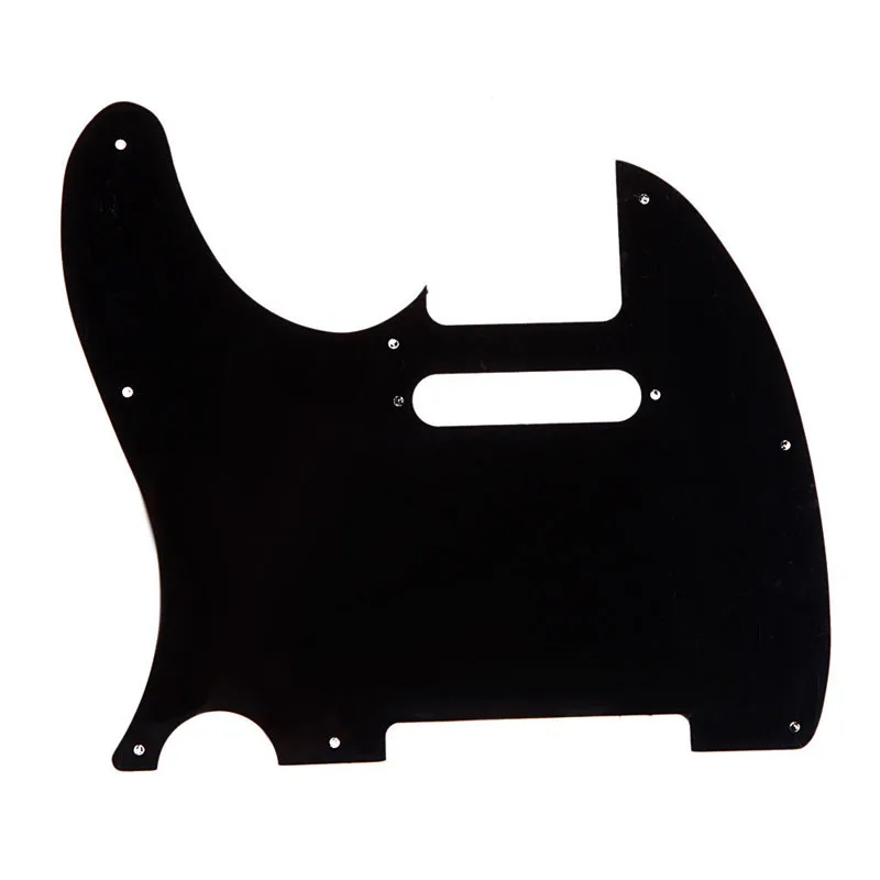 3 Ply with ABS on the top and 8 screw holes in the side of the pickguard.