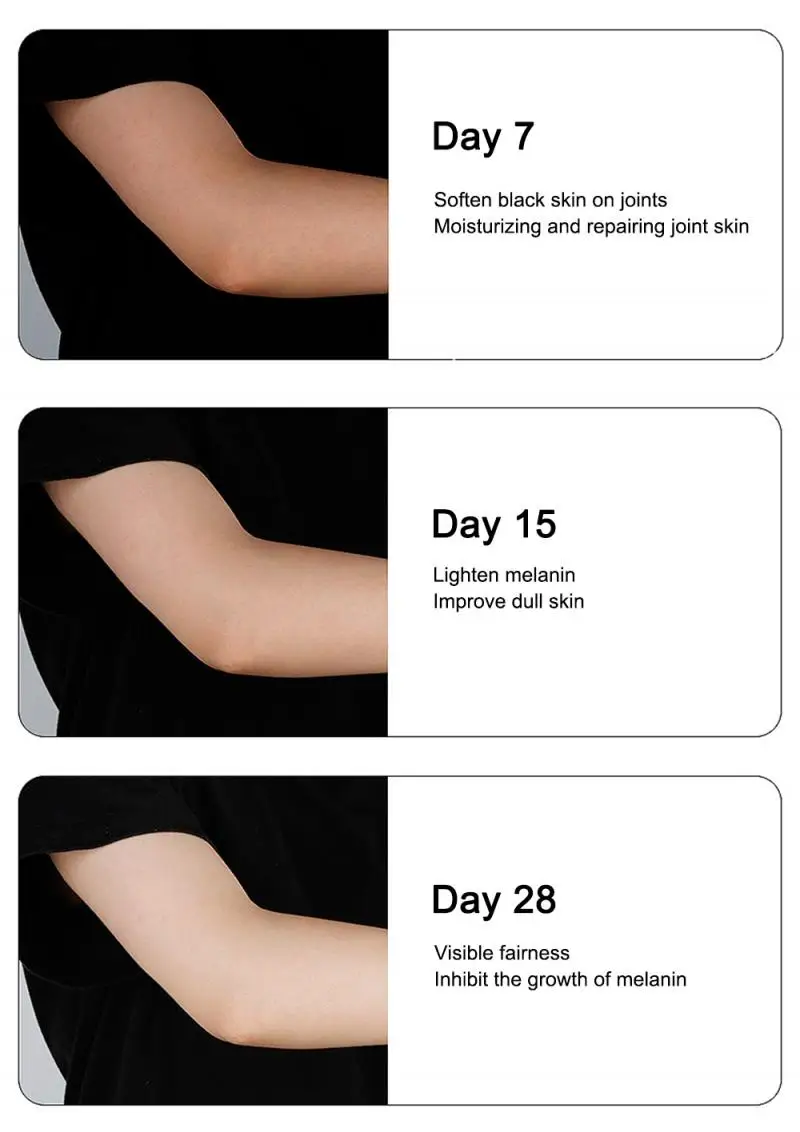 Возьмите соответствующее количество крема и нанесите его на желаемую область, мягко массируйте в течение нескольких минут, глубокое очищение, блокируя питательные вещества и влагу, создавая гладкую и увлажняющую кожу, это очень эффективно для темной и грубой кожи суставов.