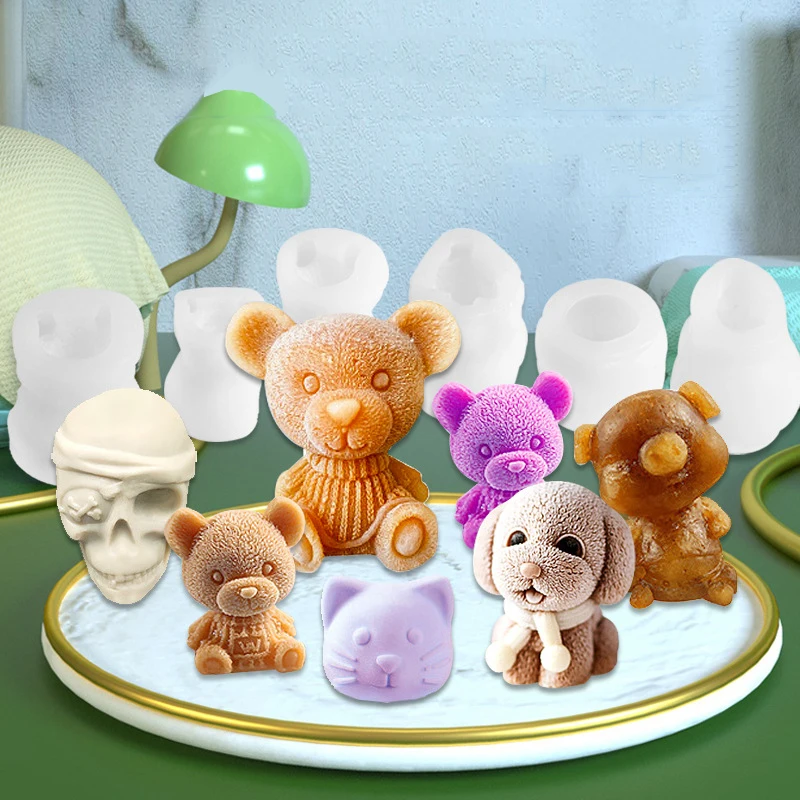 Мультяшный медведь Силиконовые формы для торта собака Свинья Форма черепа помадка шоколад желе пудинг украшения для тортов мусс инструменты для изготовления свечей