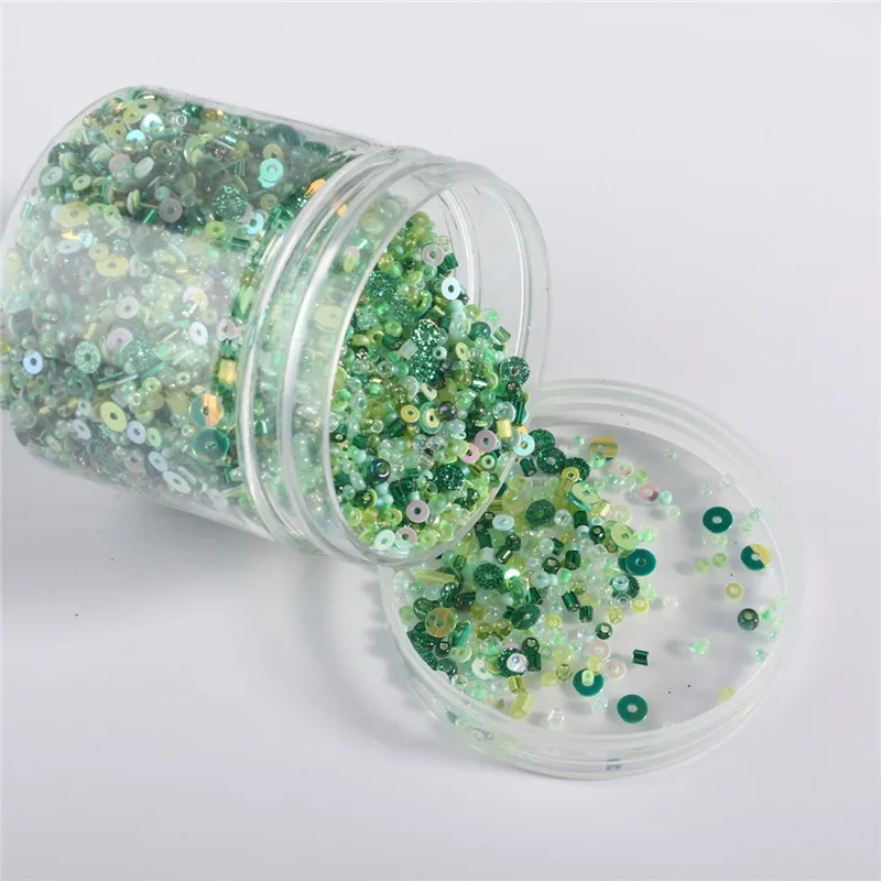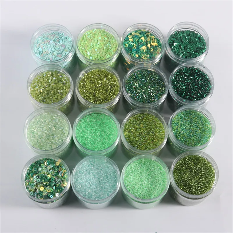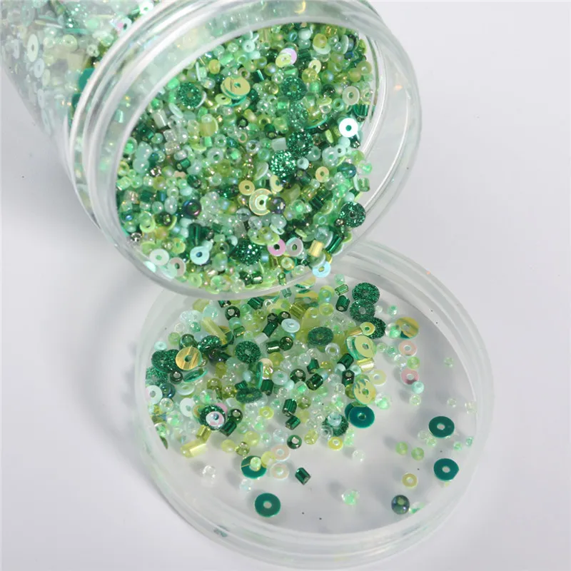 Зеленая серия расшитых блестками стеклянных бусин-это коллекция для многих клиентов, которым нужны материалы одного цвета, поэтому эта ссылка включает в себя рисовые бусины, тюбики и блестки.