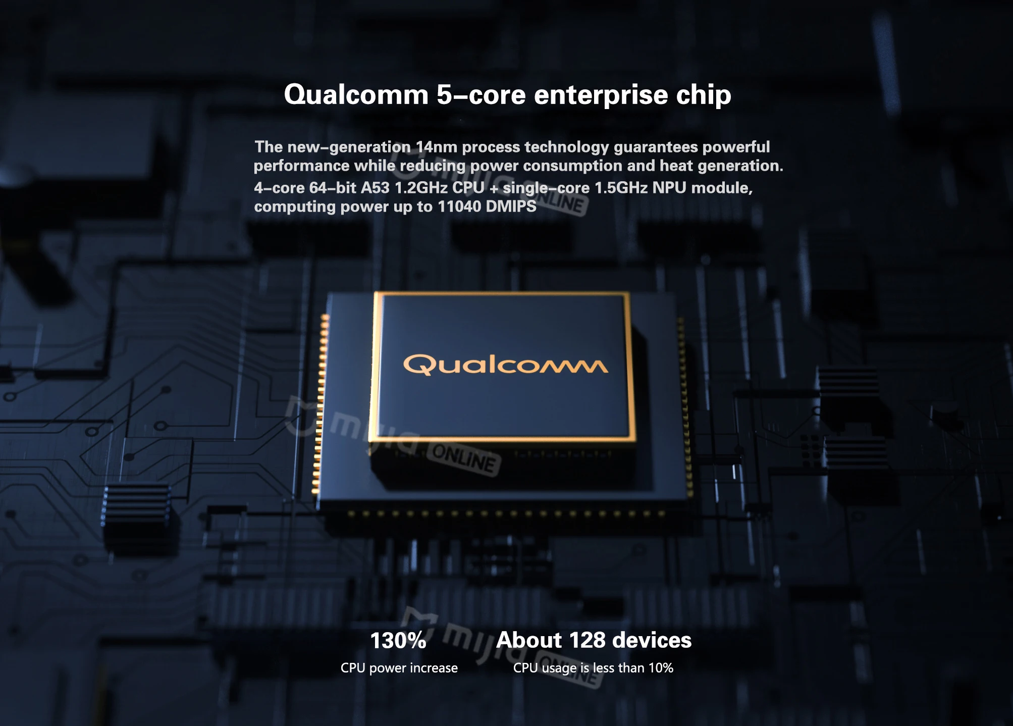 Мощность Фул предприятия-Американского общества по испытанию материалов) высокого качества класса 5-основной чип устройство, док-станция Qualcomm IPQ6000, 4-х ядерный 64-разрядный A53 1,2 ГГц Процессор + одноядерный 1,5 ГГц NPU модуль, вычисления Мощность до 11040 DMIPS, процесс следующего поколения 14 нм, значительно уменьшая энергопотребление и тепловыделение на 20%