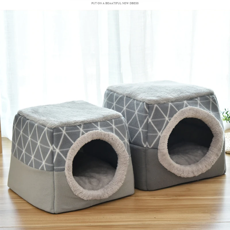 2 в 1 дом и диван. Закрытый дом можно использовать как уютную пещеру, чтобы спрятаться или сложить в прекрасный диван для домашних животных, ваш питомец может спать на толстой и мягкой внутренней коврике для максимального комфорта.