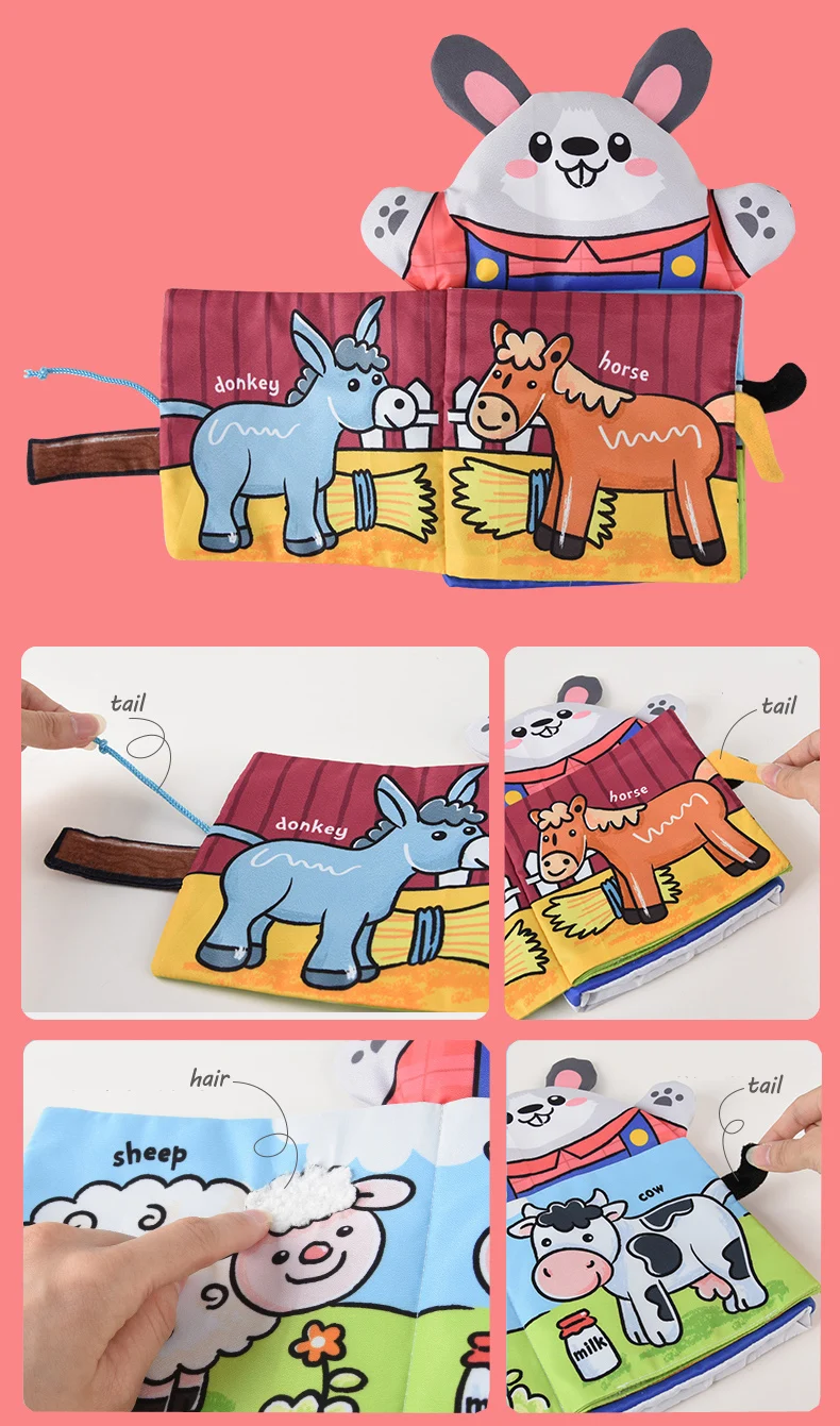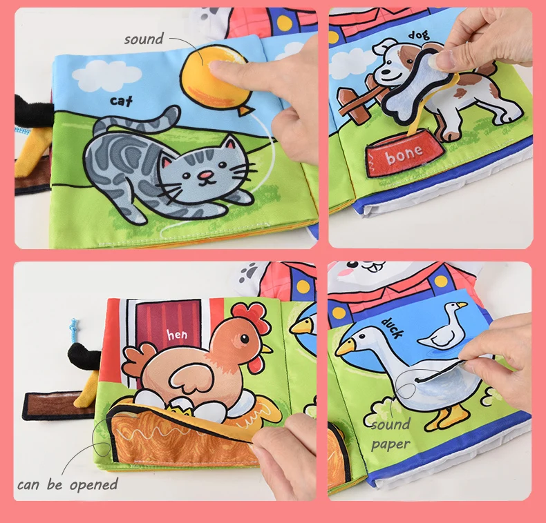 Размер: 28*24 см книга Материал: ткань и хлопок Посылка: с сумкой Подходит для детских игрушек 0-12-24 месяцев