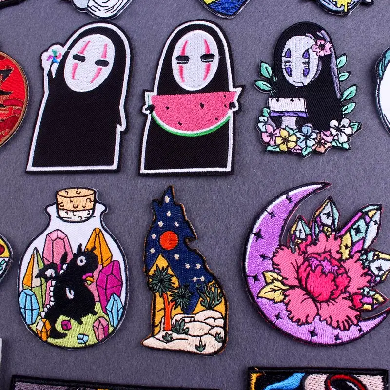Мультяшные аниме-нашивки для одежды, мужские нашивки без лица, нашивки для утюга на одежду, нашивка с вышивкой волчьих гор, полосатая нашивка на куртку