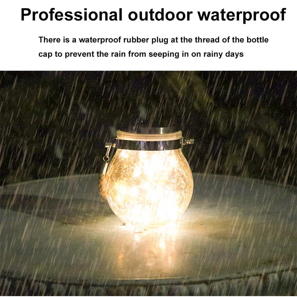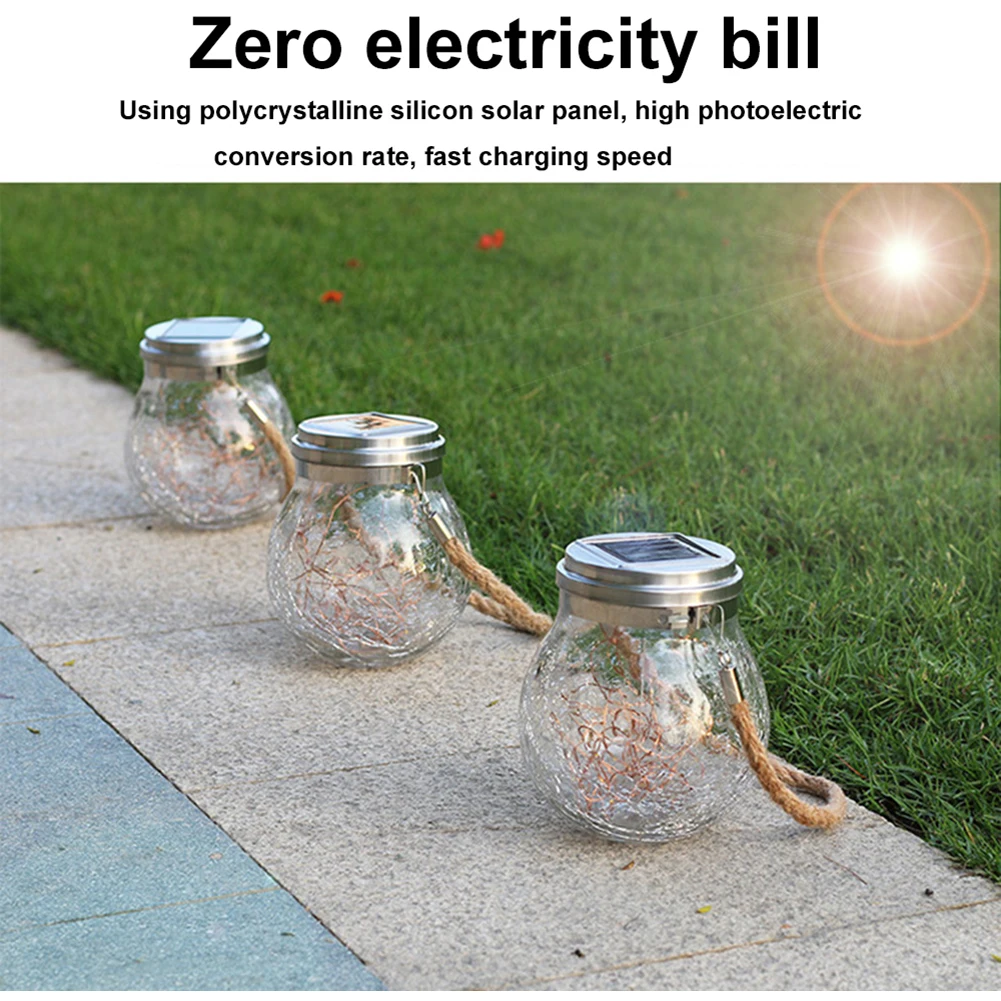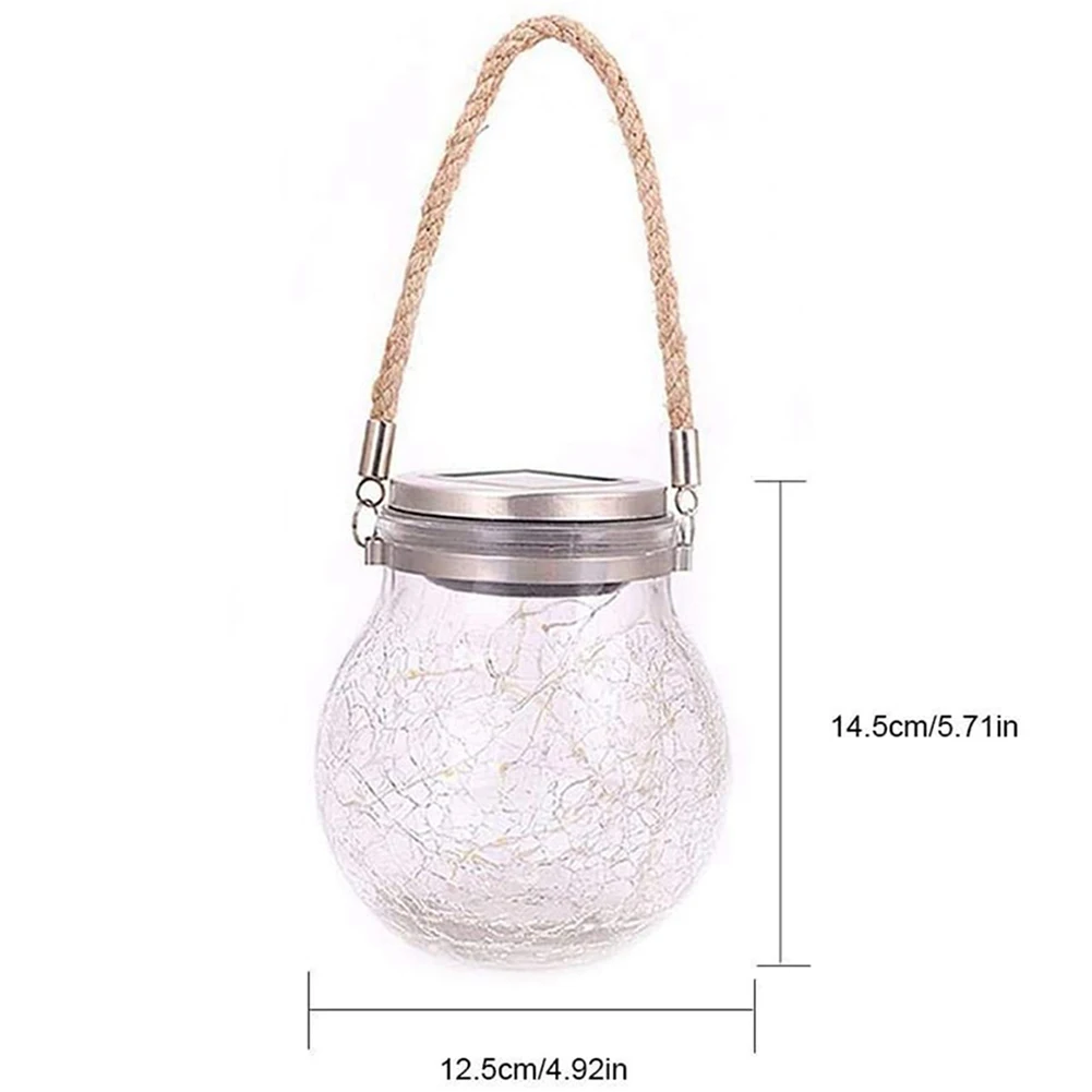 Описание: Подвесной светильник на солнечной батарее со стеклянной баночкой Ищете уникальные светильники для вашей свадьбы? Хотите добавить романтическую атмосферу для активного отдыха? Хотите уютные ощущения в вашем саду? Особенности: Толстый Стеклянный Глобус с дизайном трещин (уникальный и прочный) Благодаря высококачественному погодостойкому дизайну, он крепкий и выглядит особенным. 30 теплых белых светодиодов медные провода струнные огни (теплые огни и расслабление) Теплое Белое мягкое освещение создает чудесную и расслабленную атмосферу. Питание от солнечной энергии (простое и удобное) В течение дня: солнечная панель собирает солнечные огни и преобразует их в электрическую мощность, которая хранится в прилагаемой аккумуляторной батарее. Ночью: светильник включается автоматически. Параметры: Материал: АБС-пластик + нержавеющая сталь Солнечная панель: 2 в/100 мА Емкость аккумулятора: 2 в 600mHA Вес изделия: 700 г Водонепроницаемый Рейтинг: IP65 Время зарядки: более 6 часов Светильник ВКЛ/ВЫКЛ: окружающей среды светильник с датчиком 1. Снимите защитную пленку с панели солнечных батарей. 2. В первый раз, пожалуйста, включите светильник и поместите его под прямой солнечный светильник в течение 12 часов. 3. После первого использования, Зарядка 6-10 часов в течение дня и светильник 8-12 часов в ночное время. Упаковочный лист 2 * светильник на солнечной батарее