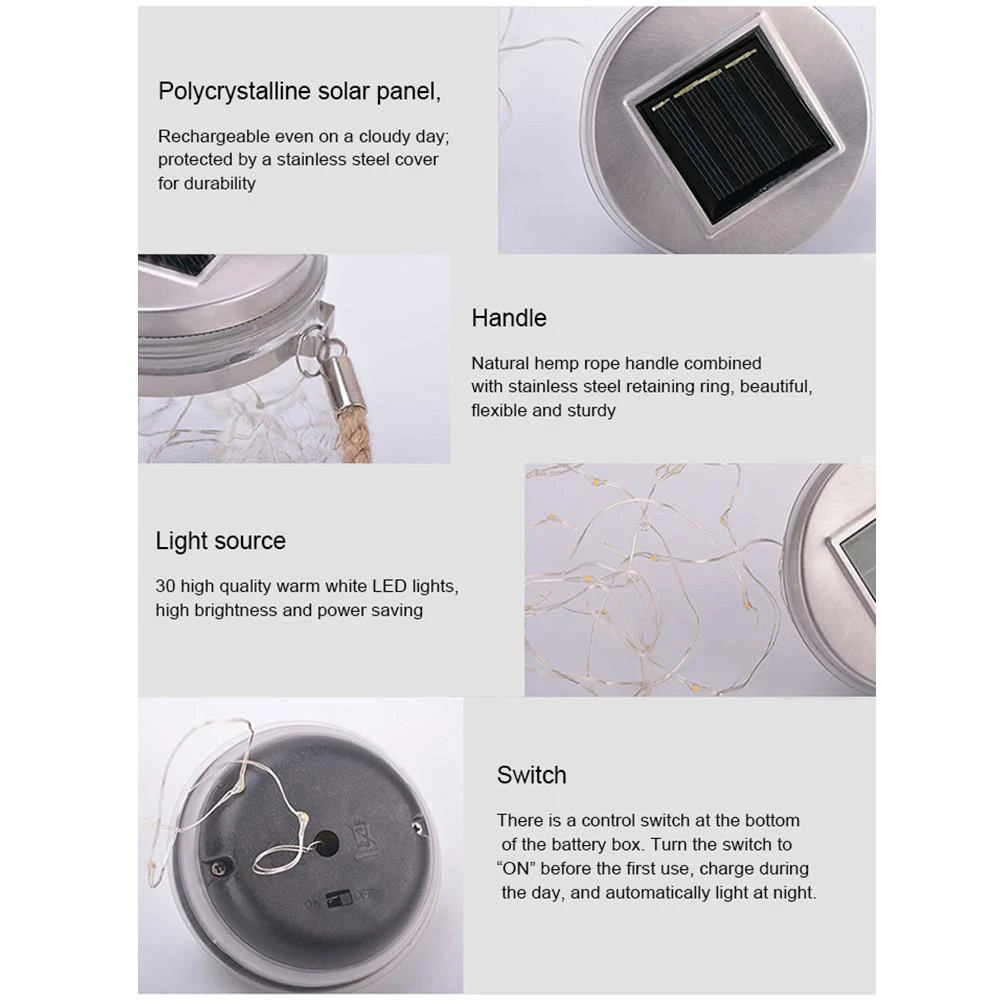 2 шт. солнечный светильник Mason Jar на солнечных батареях 30 светодиодный светильник Фея светящаяся гирлянда подвесной Солнечный фонарь стеклянная банка лампа для сада