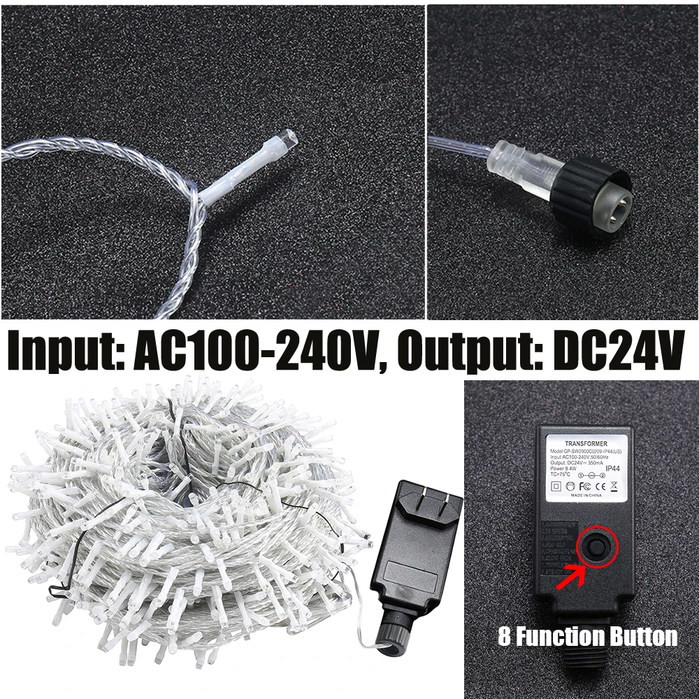 10 м-100 м/100 - 500 светодиодов, сказочный светодиодный светильник, открытый водонепроницаемый, штепсельная вилка США, безопасный DC30V, Рождественская гирлянда для рождества, свадьбы, праздника