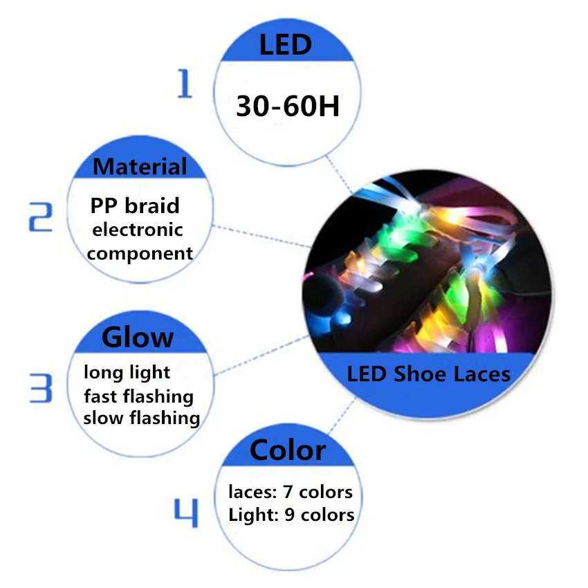 Батарея: каждый шнурок оснащен 2 батареями CR2032, время использования около 30-60 часов