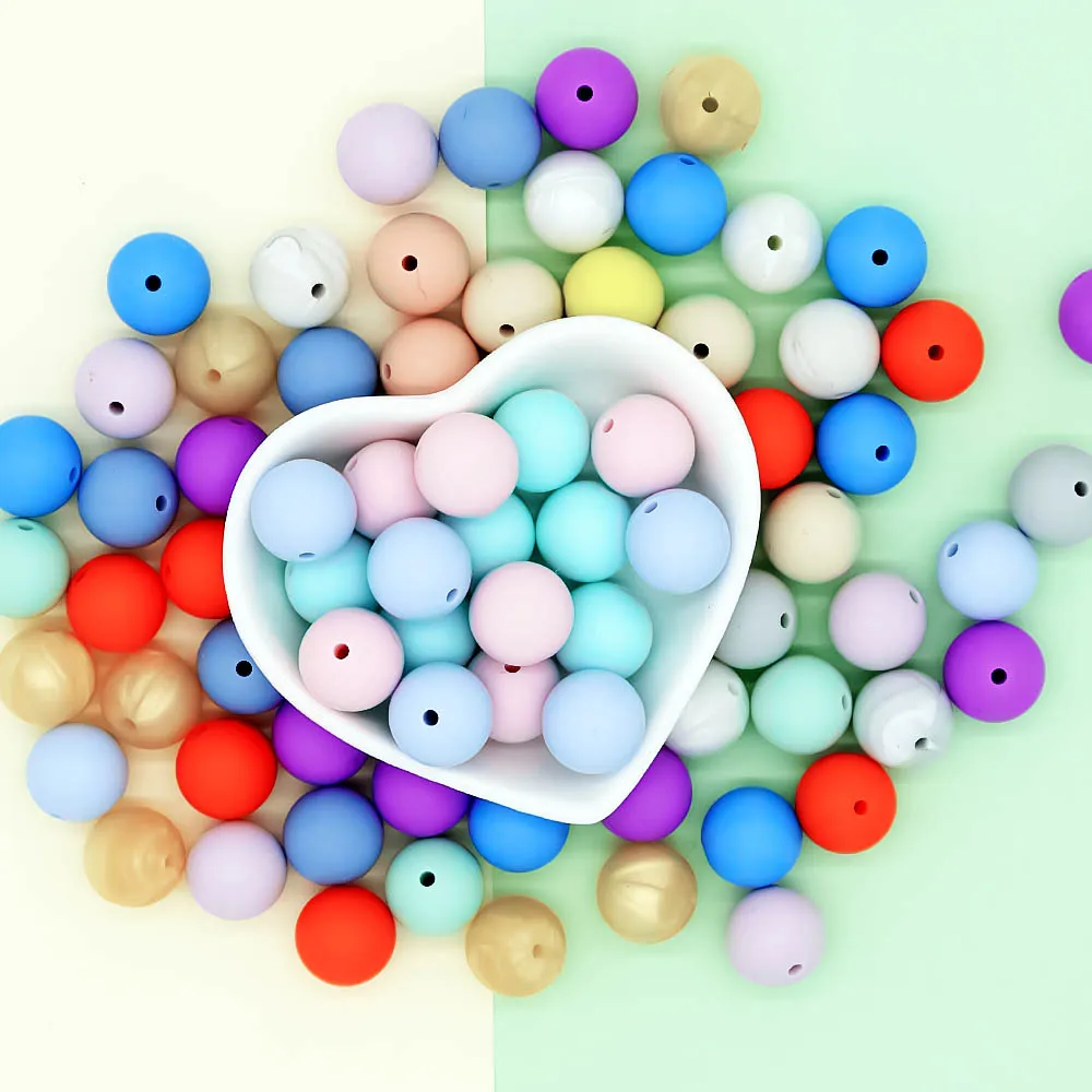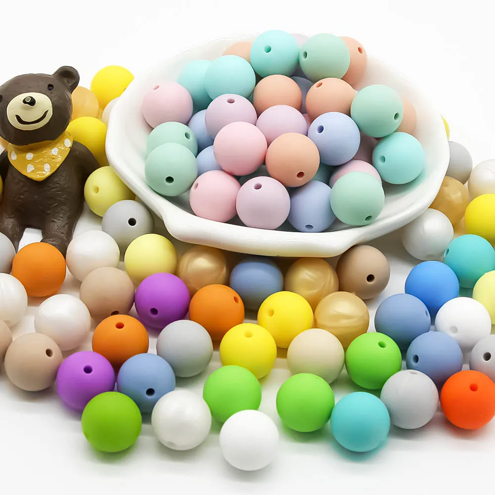 Милые Детские Силиконовые бусы BPA бесплатно 12 мм 10 шт., экологичные сенсорные DIY ювелирные изделия, прорезыватель, ожерелье, красочные жевательные цепочки для младенцев