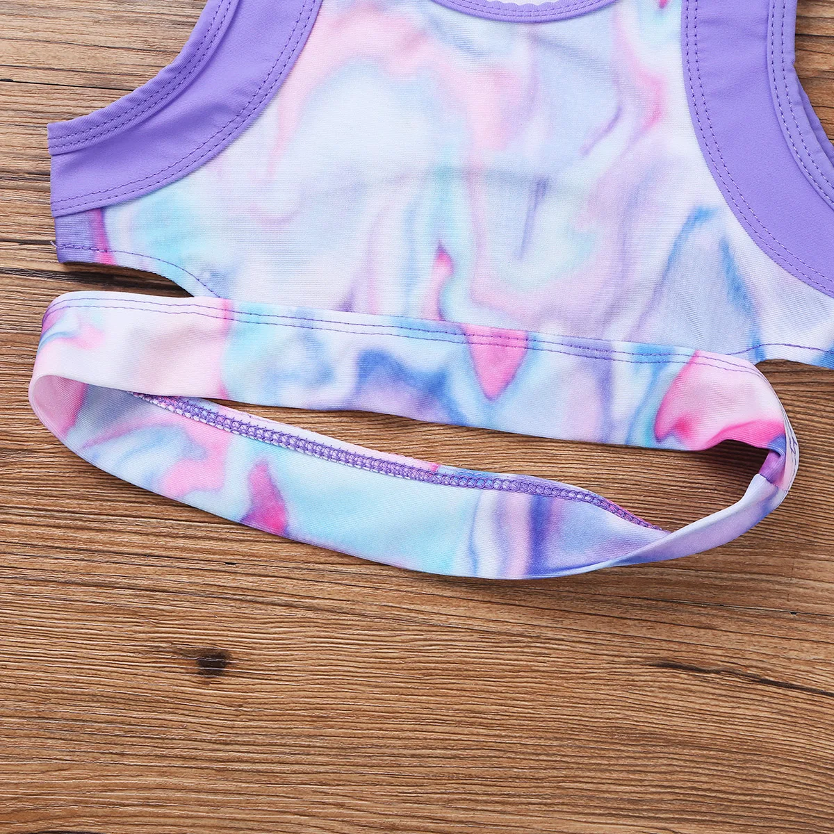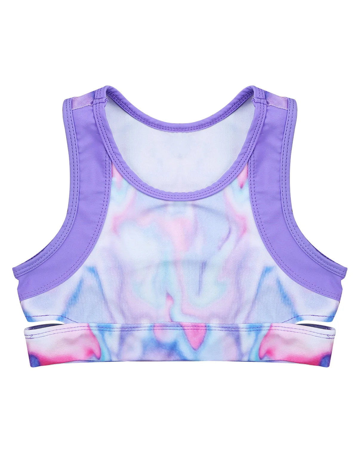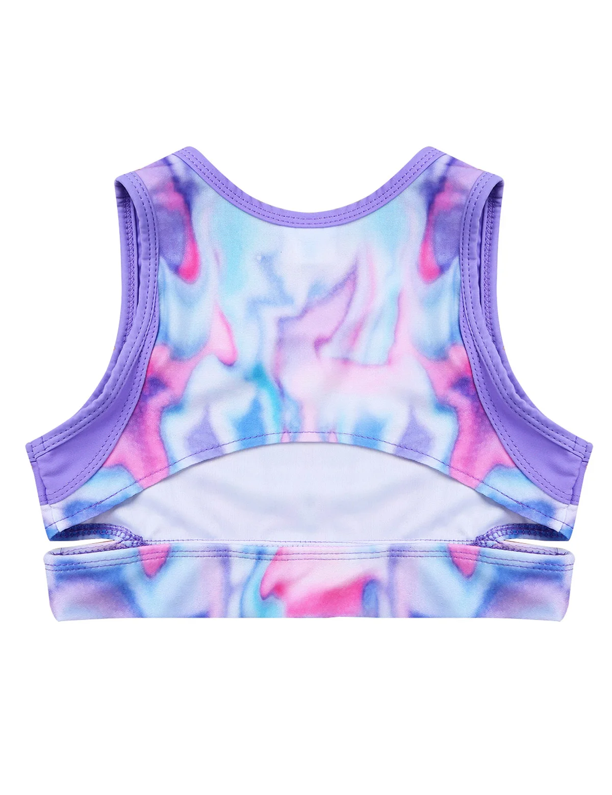 Sleeveless, round neck. Pretty tie-dye design. Pull on closure, slim fit. Stretchy fabric, comfortable to wear.