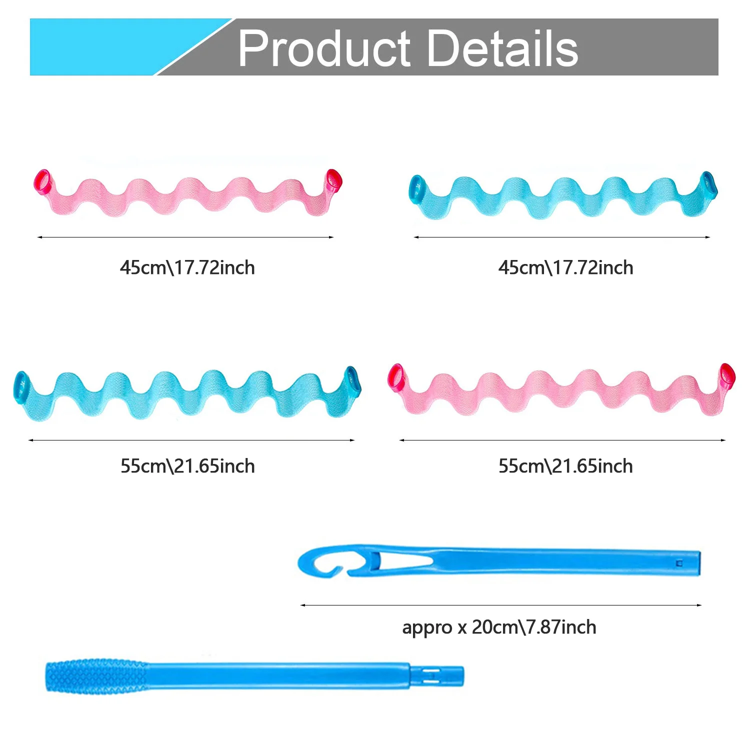 Включает в себя: 16 шт. 45 см и 16 шт. 55 см щипцы для завивки волос Спиральные Локоны с 4 синими крючками для укладки. DIY ваша любимая волна прическа, подходит для большинства волос
