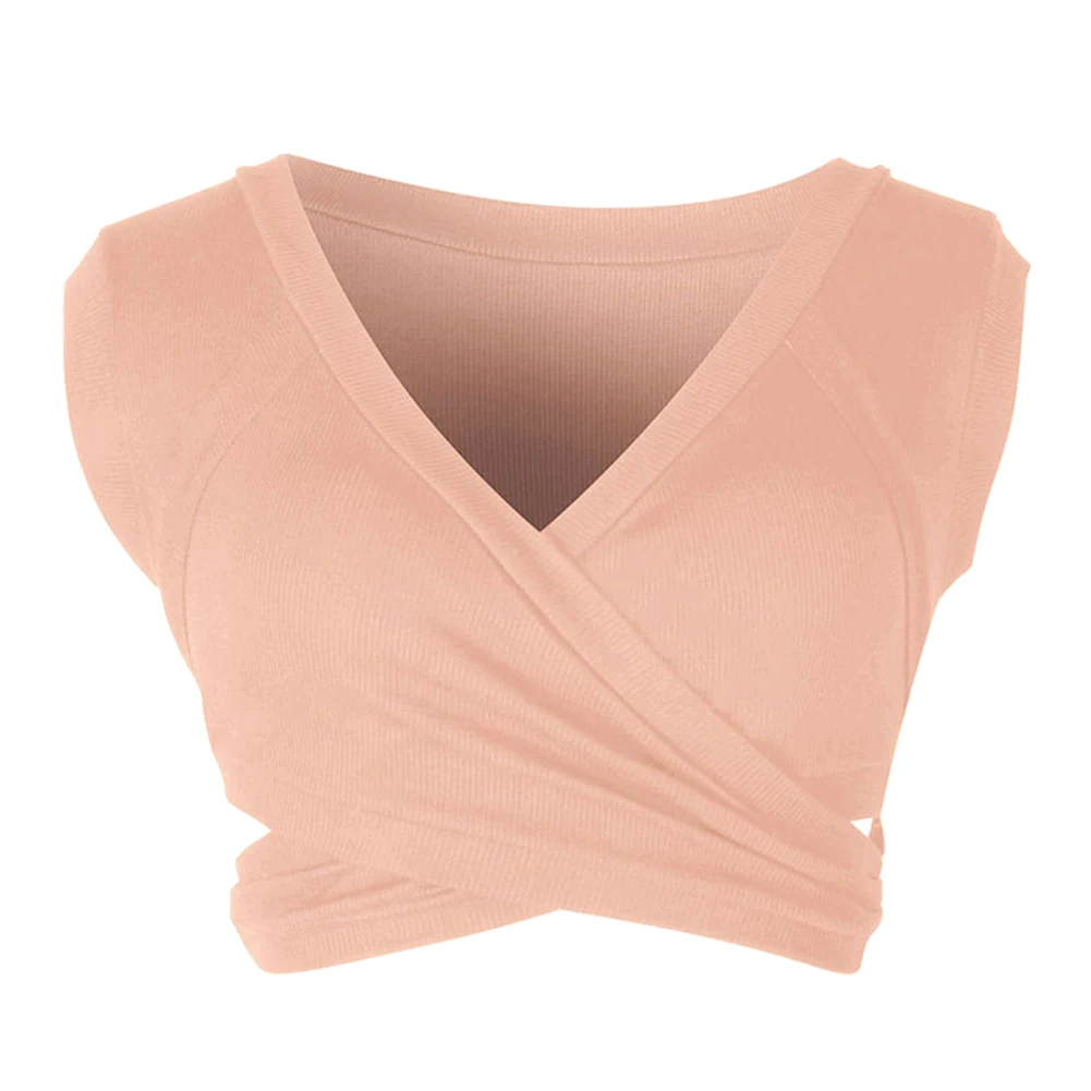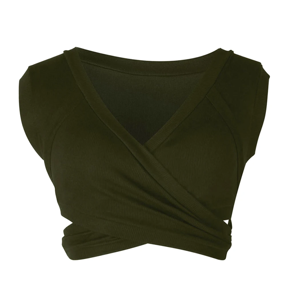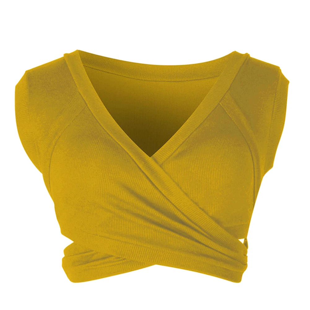 Сексуальный женский летний однотонный короткий топ с v-образным вырезом, тонкий короткий жилет без рукавов