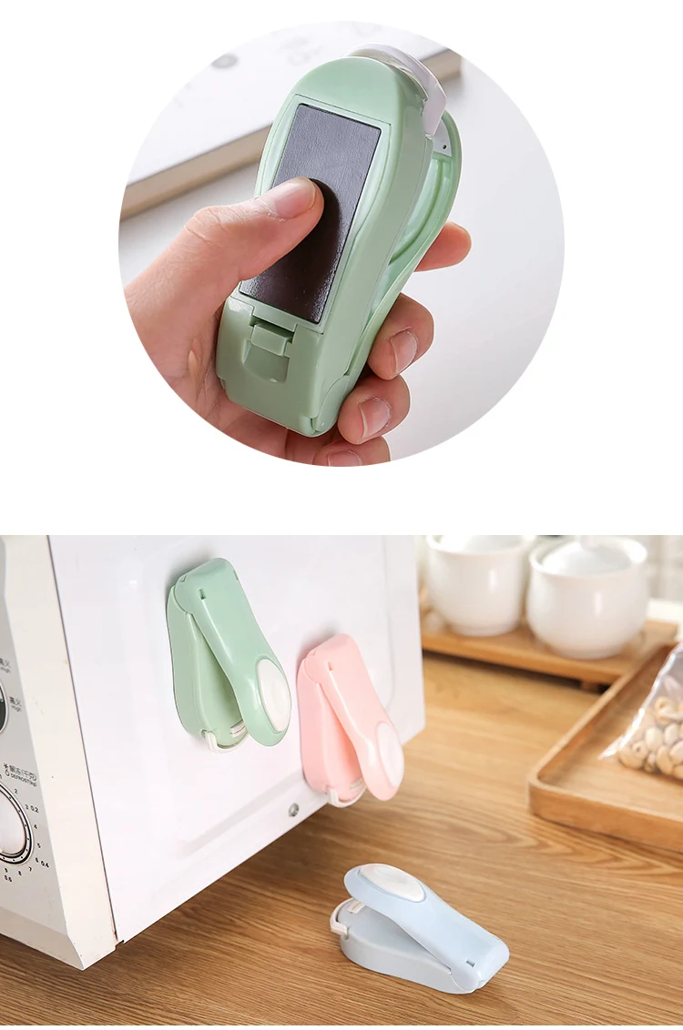 Kinldy Notes Пожалуйста, вставьте 2 батарейки AA (не входят в комплект) и отметки «+»-«-», убедитесь, что батареи находятся в правильном положении. Идеально подходит для сохранения свежести Идеальное запечатывание неиспользуемых частей еды, закусок, приправ, ингредиентов в полиэтиленовых пакетах. Принцип работы Нагрев для расплавления полиэтиленового пакета. После установки батарей, пожалуйста, предварительно Нагрейте упаковщик, нажав 5 секунд перед использованием.