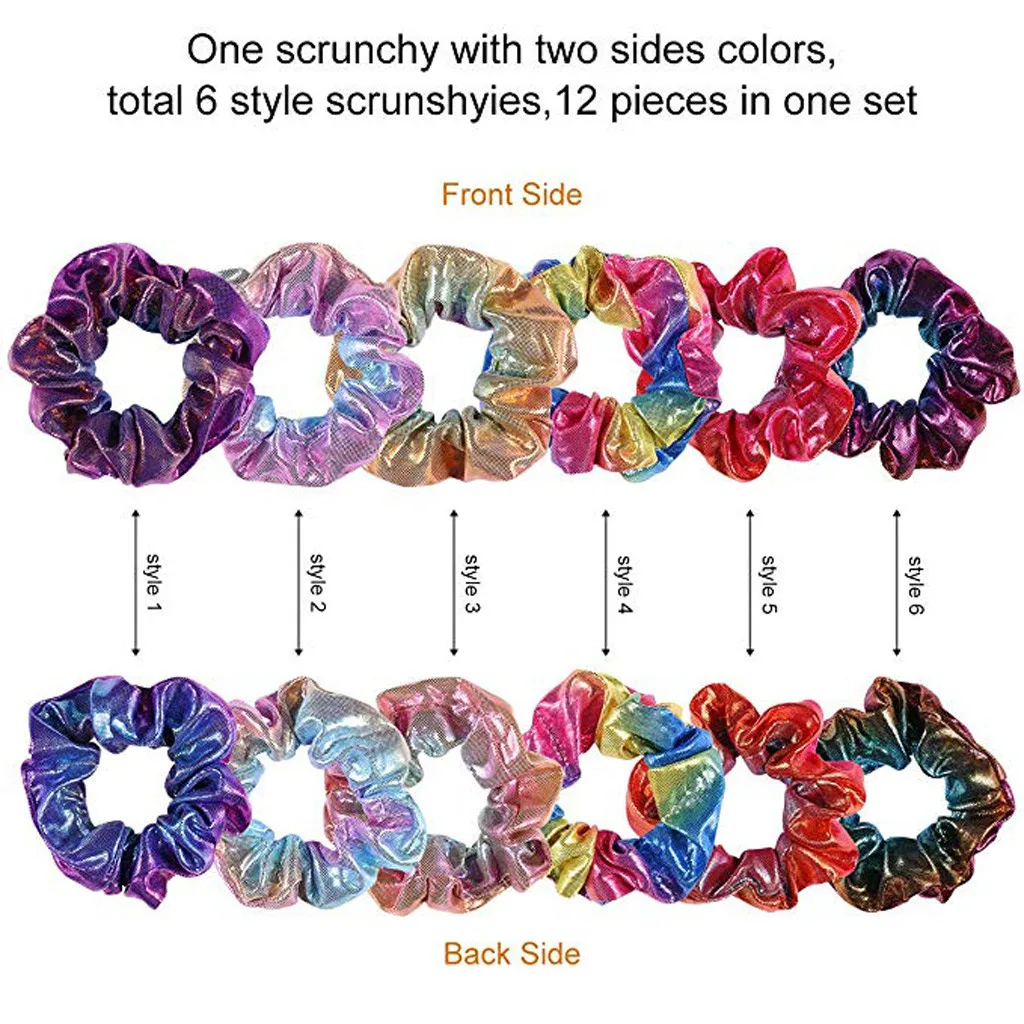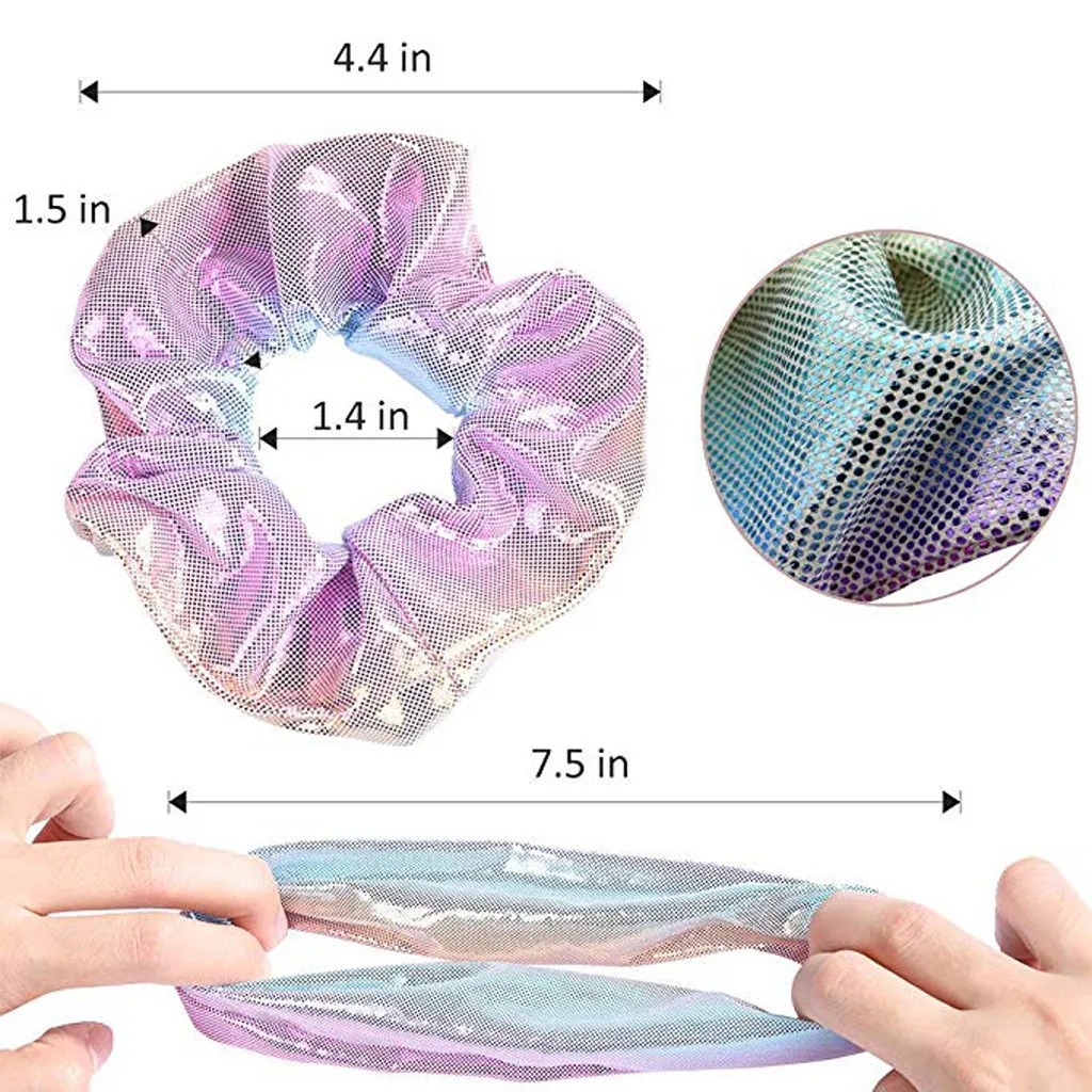 Положите Волосы в стиле с металлическим спандексом резинки. Эти Scrunchies Отражающий светильник, как прекрасный ювелирный элемент, идеально подходит для команд и Группами.