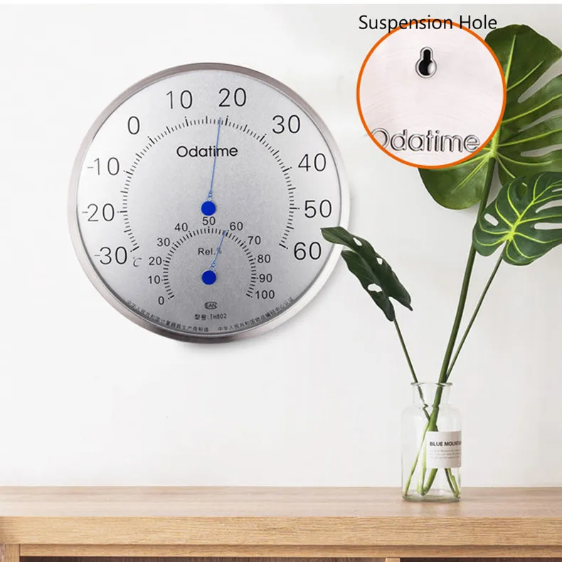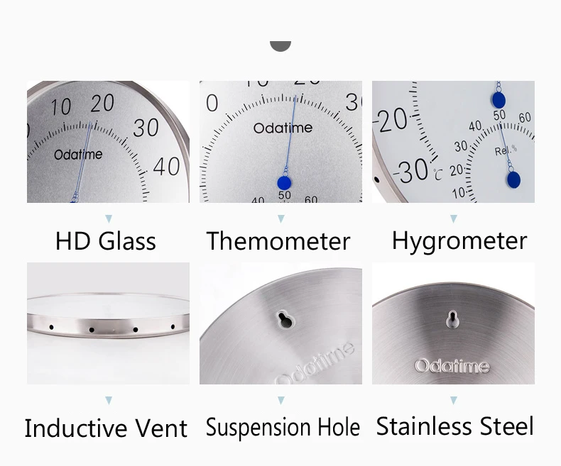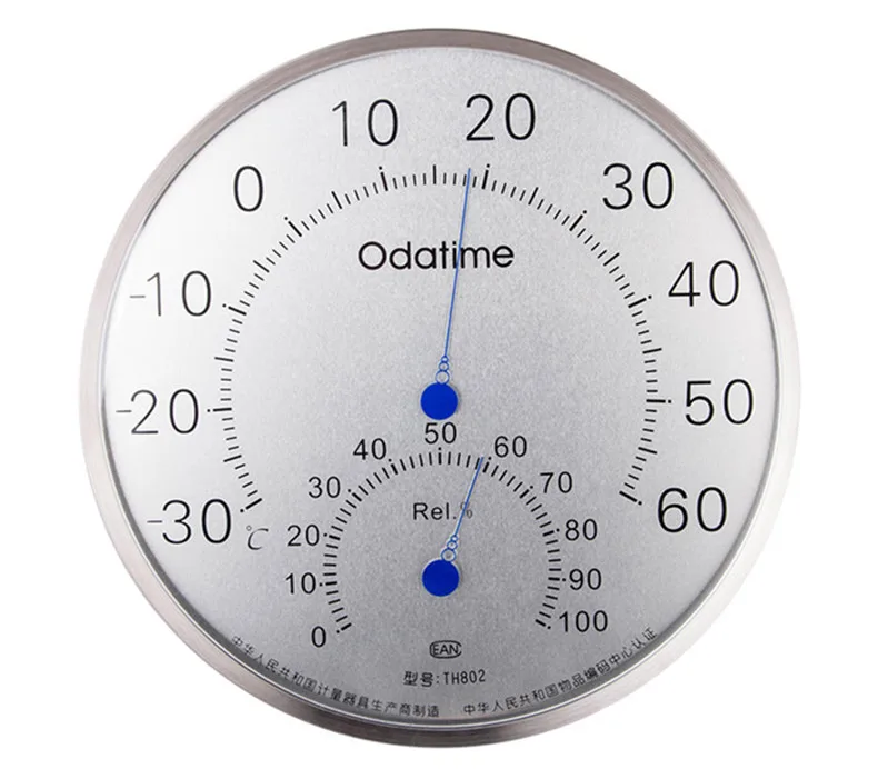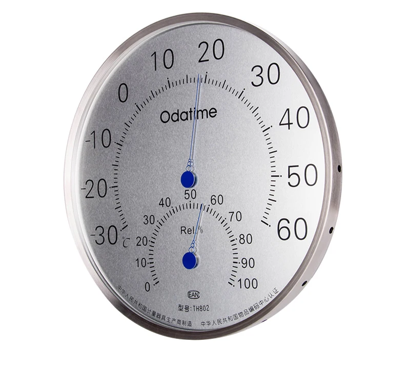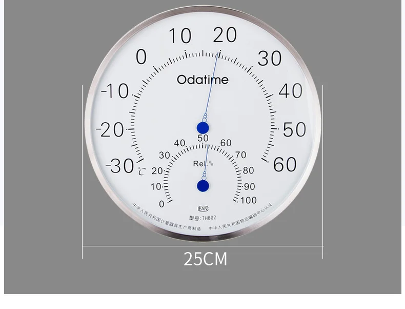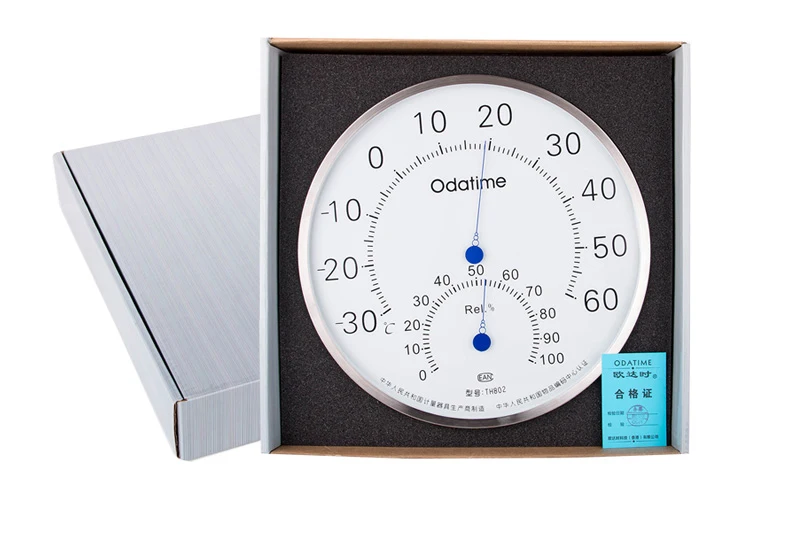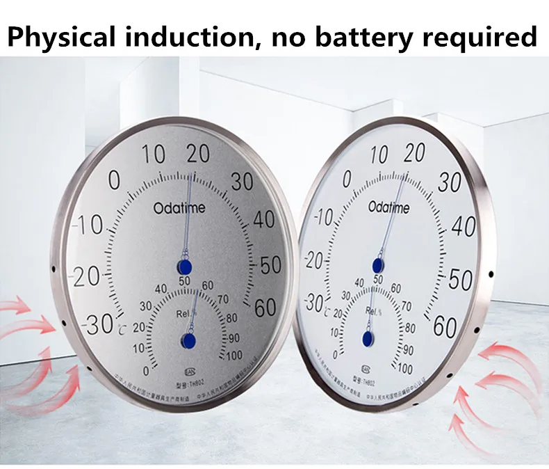 Параметры: 1. Размер: 250 мм (диаметр) x 18 мм (толщина) 2. Материал: нержавеющая сталь и магниевый сплав 3. Диапазон температур:-30 ℃ ~ 60 ℃ Погрешность измерения:<± 1 ℃ ~ ± 2 ℃ 4. Диапазон влажности: 0% ~ 100% Погрешность измерения:<± 5% ~ ± 7% 5. Батарея не требуется, механическое автоматическое определение