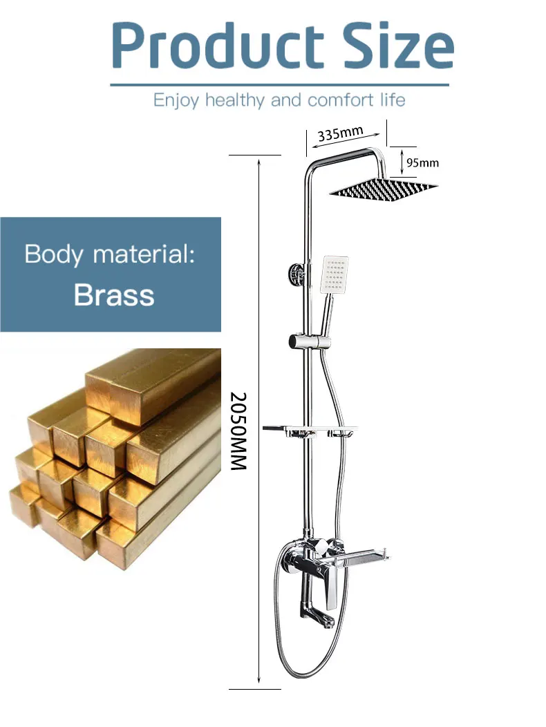 1. Подъемная душевая труба 2. Смеситель для душа 3. Ручной душ 4. Большой верхний спрей 5. Подъем средней талии 6. С двойным крючком 7. Винтовой фитинг 8. Шланг для душа
