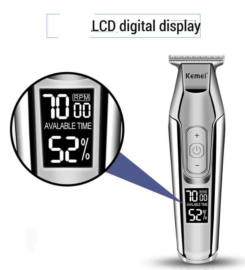 Профессиональная машинка для стрижки волос Kemei, машинка для стрижки волос с ЖК-монитором, Мужская бритва, беспроводной электрический триммер, инструмент для зарядки через USB, 5