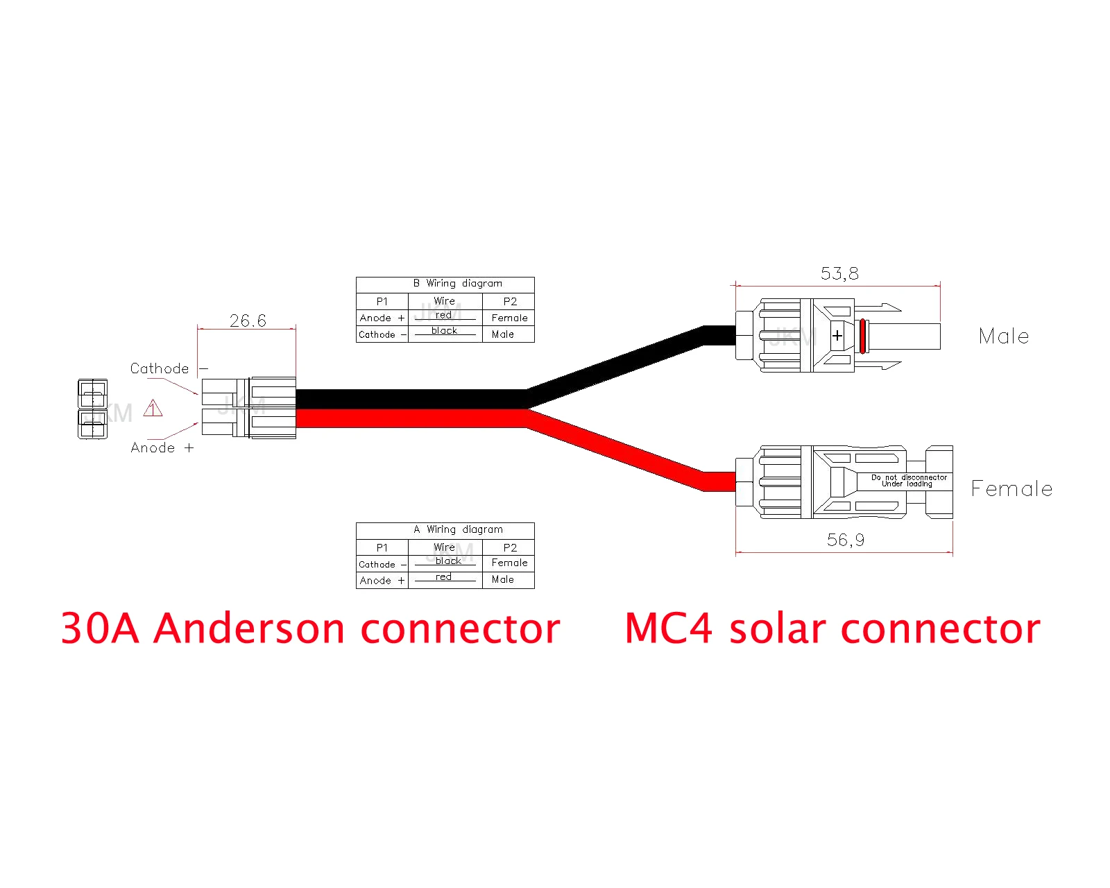 Номера товара: JKM-GF-001 Название продукта: MC4 Мужской и женский Использование продукта: Используется для солнечной вилки MC4, разъем питания USP, модельное соединение с батареей самолета, соединительная линия для беспилотных батарей, линия подключения питания аварийного зажигания автомобиля, аварийный источник питания, линия подключения солнечной батареи, оболочка продукта формируется в одно время Характеристики провода: 17A (1,5 м ㎡) 22а (2,5 м ㎡,14AWG) 30A(4 м ㎡;6 м ㎡;14AWG,10AWG) Материал: ПК/PPO Цвет внешнего вида: Черный Характеристики входного разъема: вилка MC4 и вилка Материал: плагин медный оловянный корпус PPO Стандарт полярности: MC4 женский отрицательный (-), MC4 Мужской положительный (+) Рабочее напряжение: 0-600 в Номинальный ток: 0-30A Защитное напряжение: NC Максимальная мощность: 1000 Вт Особенности продукта: 1. Огнестойкий резиновый материал корпуса MC4 отличается прочностью и прочностью. Внутренний сердечник-окислительная луженая медь 2. Продукт имеет низкое сопротивление и более проводящий 3. Провод изготовлен из новой чистой меди, которая может использовать мощные электрические приборы.